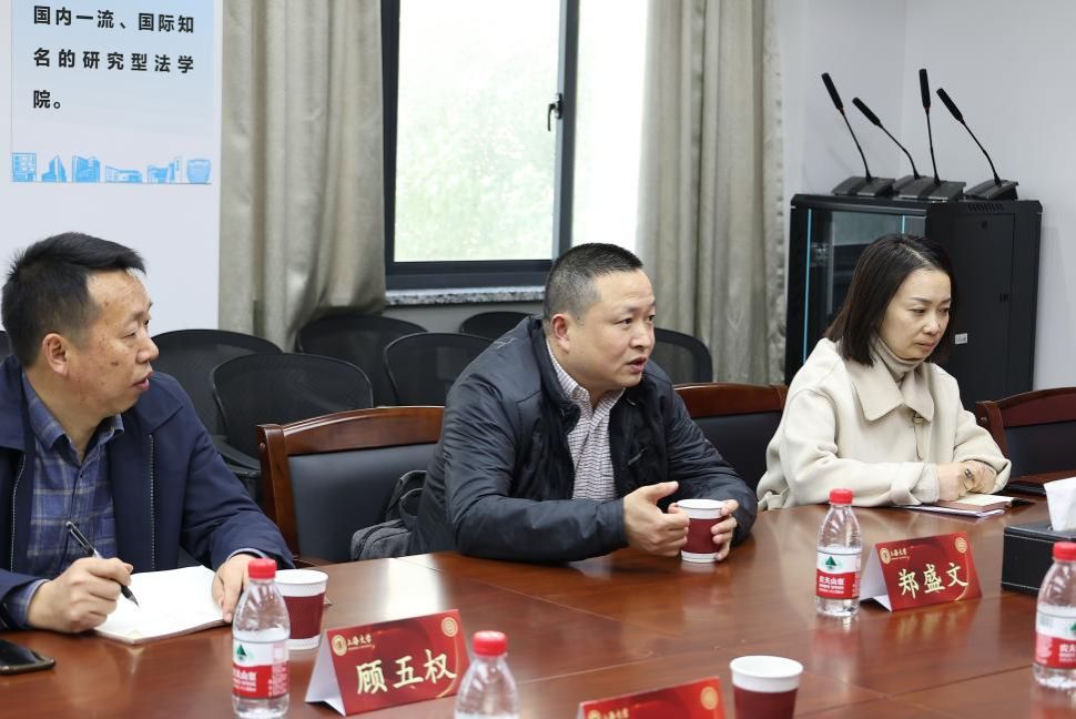 2024年3月12日下午,四川省泸州市市场监督管理局党组副书记、副局长郑盛文,泸州市市场监督管理局自贸区分局局长顾五权、知识产权科科长邓晖一行到访Beat365唯一官方网站法学院。法学院党委副书记、副院长于伟,法学院副院长、知识产权学院院长袁真富,法学院知识产权学院教授徐红菊出席接待。