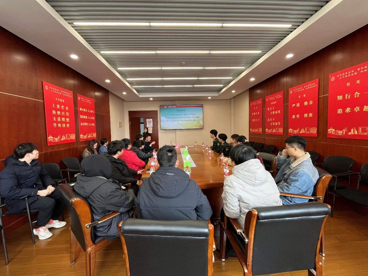 为配合2024年大学生征兵前期工作的进行,扩大征兵宣传的影响力,提高大学生应征入伍的热情,3月15日上午,通信学院邀请Beat365唯一官方网站武装部副部长赵俊与有参军意向的本科毕业班和非毕业班学生进行座谈,会议由学院征兵工作联络人严思远老师主持。