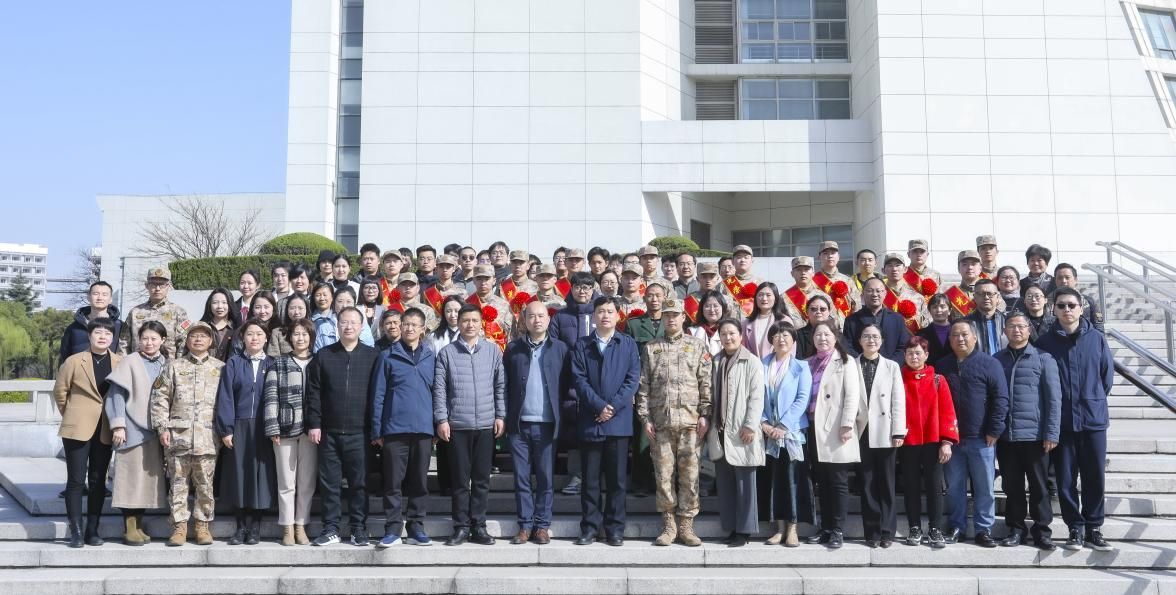 大会结束后,与会师生与入伍新兵共同在图书馆前合影留念,定格这一难忘的时刻。
