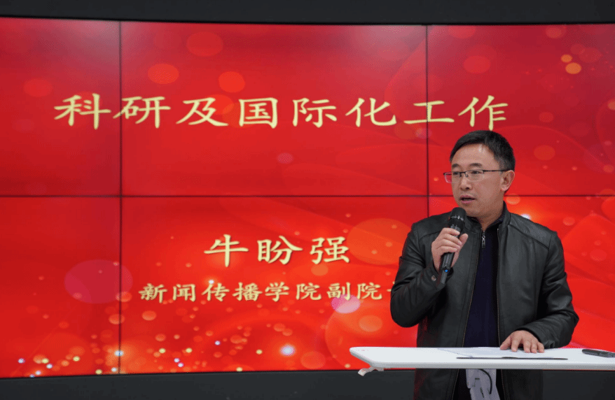 学院副院长牛盼强总结了学院科研工作情况,从落实学院激励计划、优秀专著出版计划、召开科研创新大会、重点科研论坛、专业特色工作坊及沙龙、推进国际传播教育联盟等方面,部署安排了科研及国际化重点工作。