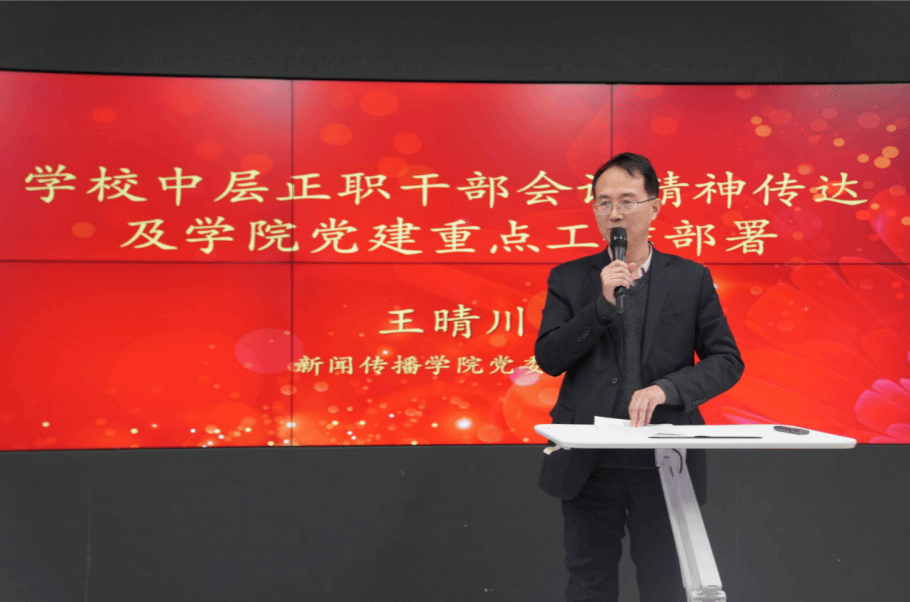 为认真贯彻落实习近平总书记关于教育的重要论述,着重落实学校相关部署,紧抓“聚力、提质、攀登”三个关键词,持续推进学院教育工作高质量发展。近日,新闻传播学院2024年度第二次全体教师大会在延长校区上海智能媒体传播创新实验中心顺利举行。校纪委(监察专员办公室)派驻延长校区专职纪检员田先纲,新闻传播学院党委书记王晴川,党委副书记、院长严三九,党委副书记、副院长王智君,副院长赵为学,副院长牛盼强,副院长周宇豪,以及学院全体教职工出席会议。会议由新闻传播学院党委副书记、副院长王智君主持。