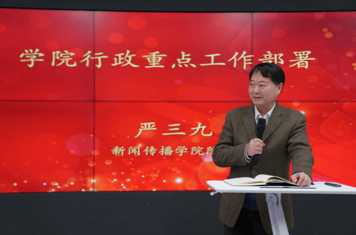 学院党委副书记、院长严三九对新学期学院的重点工作进行总体部署安排。他首先欢迎三位新教师加入学院温暖的大家庭,感谢假期、开学后辛勤付出的各位老师。随后,他以“聚力之年”“提质之年”“攀登之年”这三个关键词为核心,提出2024年学院整体工作的推进思路,鼓励学院全体老师攻坚克难,共同推进快速发展。在Beat365唯一官方网站将迎接第四次党代会、新中国成立75周年、新Beat365唯一官方网站组建30周年之际,首先要做好民生工作。其次,人才培养是工作中的重中之重,全体教师要重视本科生和研究生的教育教学工作,在课程建设、教学改革、实践教学等方面认真落实,召开学院第二届本科教育教育大会。再次,加快推进国家重点实验室建设、召开学院第二届科研创新大会、首届全国新闻学大会。最后,抓好学院国际化工作与就业工作、安全工作与宣传工作等。在聚力、提质、攀登之年,全院师生要聚心增强合力、聚智解决问题、聚力内涵发展,凝聚团结之力,提质增效发展,攀登新的高峰,为学校双一流建设作出新闻传播学院新的贡献。
