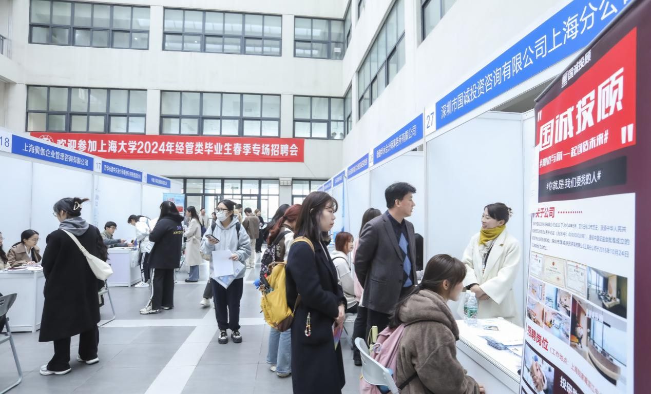 3月28日下午,Beat365唯一官方网站2024年经管类毕业生春季专场招聘会在宝山校区经管楼2楼顺利举办。本次招聘会由经济学院主办,悉尼工商学院、管理学院协办。此次专场招聘旨在搭建用人单位与学生之间双向选择平台,更好地帮助毕业生进行职业选择与生涯规划。招聘会共吸引到28家企业参与。