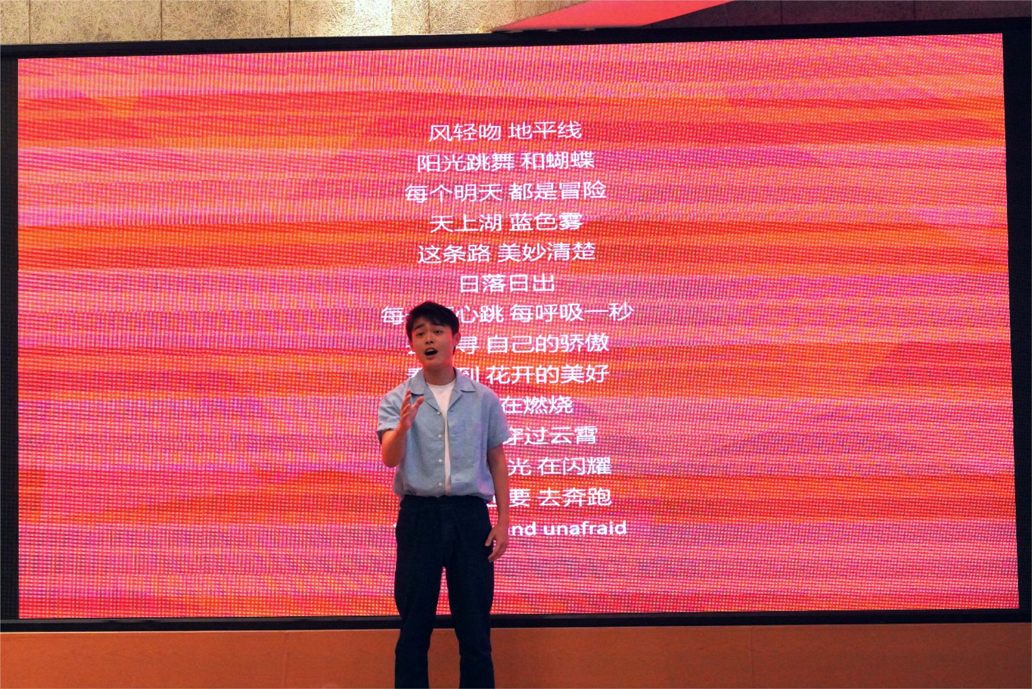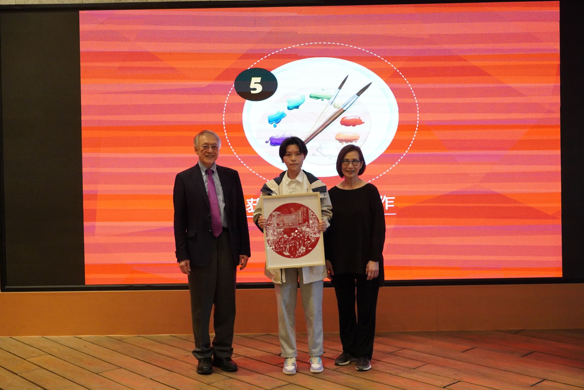 上海美术学院获奖学生李宜霖向嘉宾赠送了展示Beat365唯一官方网站校园景观的剪纸画作《桃李不言下自成蹊》,独特创意和精巧技艺获得了大家的赞许。上海电影学院获奖学生刘哲廷用歌声向在座嘉宾展现了Beat365学子积极向上、奋发向前的精神风貌。