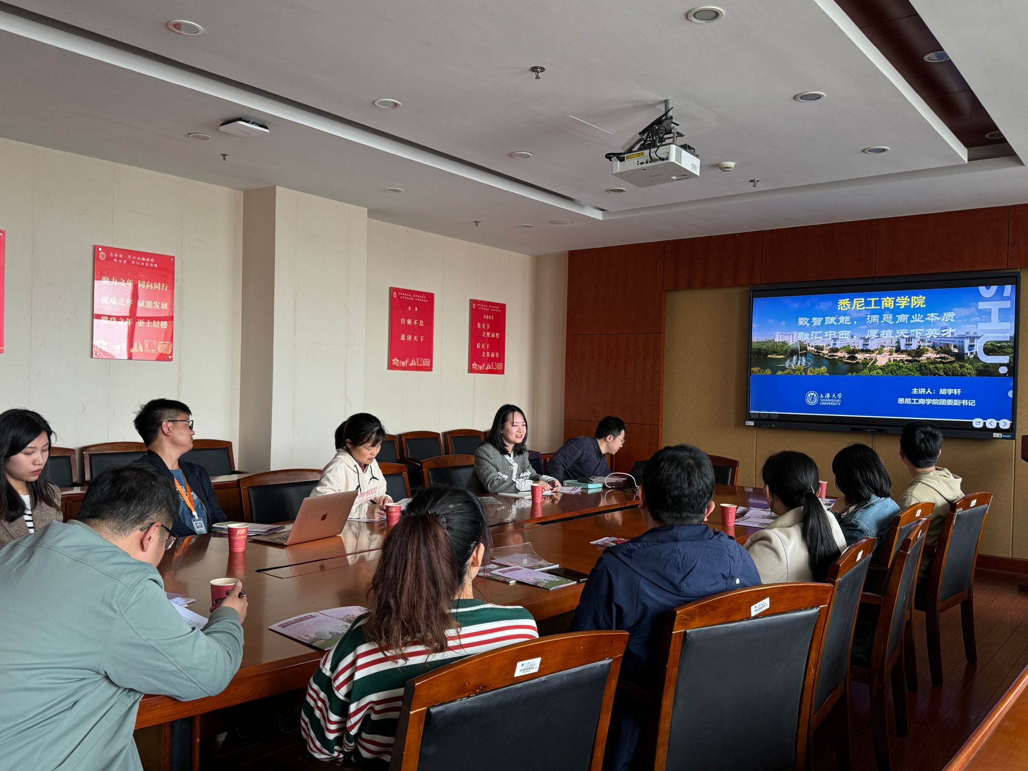 悉尼工商学院团委副书记胡宇轩介绍了学院基本概况、本科招生专业、人才培养和学院特色。学院的合作方悉尼科技大学2024年世界大学QS排名为90位,人才培养的含金量不断攀升。胡老师结合她浙江籍教师的身份,分析了浙江省高中考生报考时面对的选择和需求,并对浙江省招生宣传工作提出了宝贵的建议。