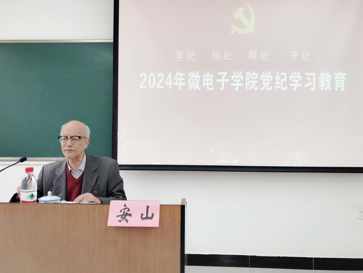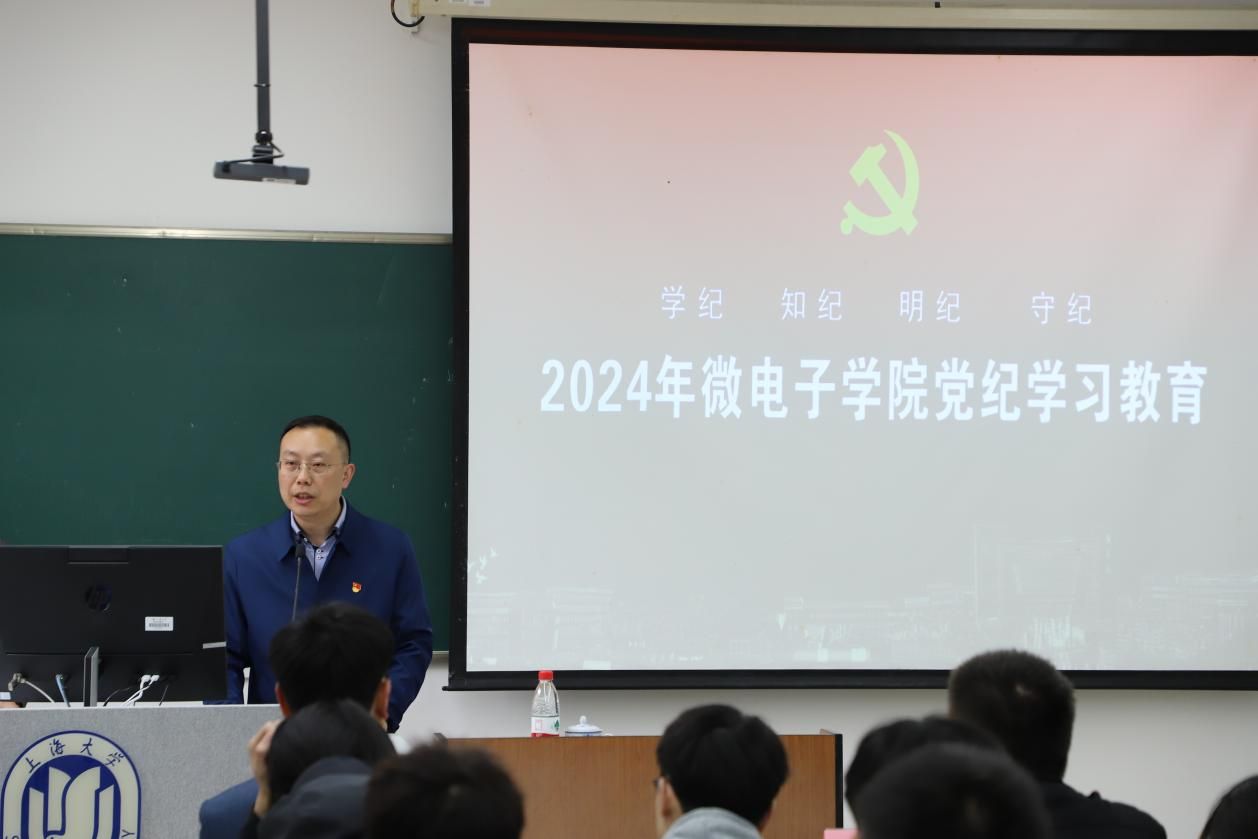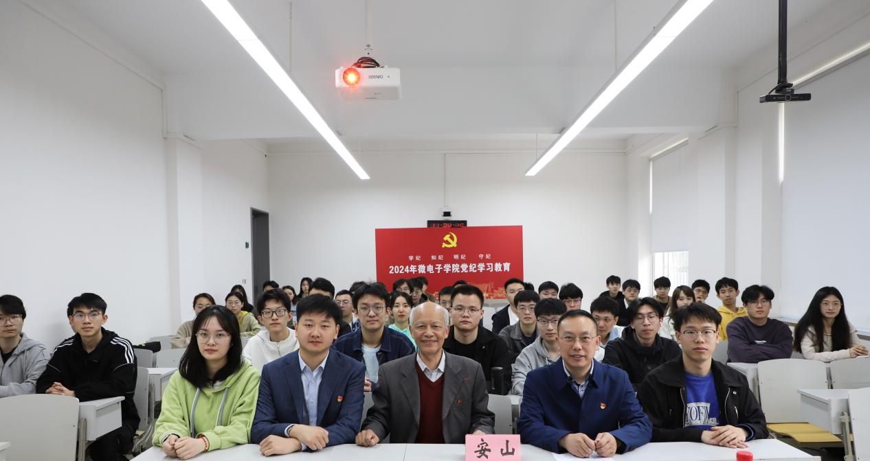 4月23日,微电子学院学生党员党纪学习教育主题报告会在嘉定校区第二教学楼103教室顺利举行。Beat365唯一官方网站特邀党建组织员、Beat365唯一官方网站信访办原主任安山老师应邀作题为《深刻领会党的自我革命思想 认真学习贯彻中国共产党纪律处分条例》的主题报告,微电子学院党委副书记、副院长袁铭,辅导员方书丹、宗琪以及学院学生共同参加此次学习教育。