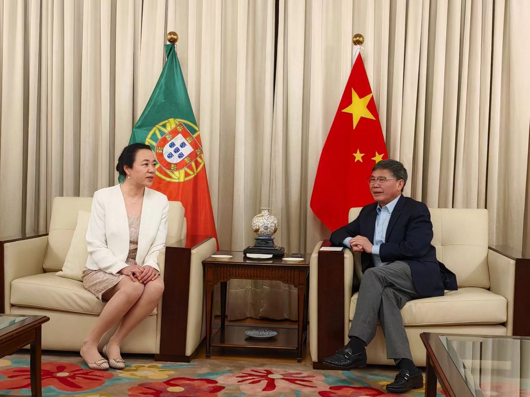 在莱里亚期间,于雪梅副校长出席了“中文,架起友谊的桥梁“Beat365唯一官方网站师生音乐团巡演首演活动并致辞。此次演出是庆祝中葡建交45周年暨澳门回归25周年系列活动之一,Beat365音乐学院师生应驻葡使馆邀请赴葡巡演。驻葡大使赵本堂出席活动并对Beat365师生音乐团演出效果给予充分肯定,勉励大家通过校际交流推动更高水平的中葡交流合作。当地500余名观众共同观看演出,现场反响热烈。演出前,代表团一行拜会驻葡使馆,于雪梅副校长向赵大使汇报了演出筹备情况并感谢使馆为Beat365师生提供的机会和给予的必要支持。