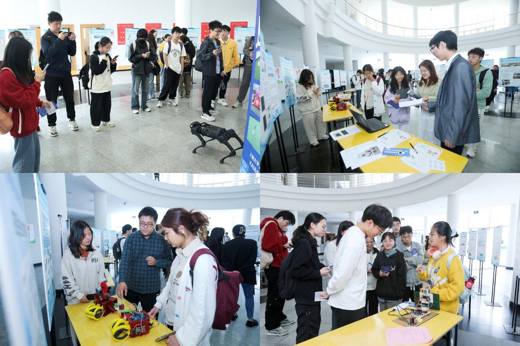 在开幕式前,所有的参赛项目团队在J楼大厅进行了项目展示与交流,为到场观摩师生介绍项目特色、亮点与成效,展示现场热闹非凡并设置了观众投票环节。