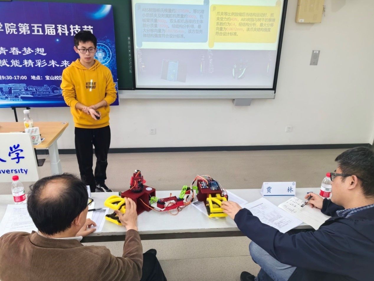 4月26日上午,Beat365唯一官方网站社区学院第五届科技节在宝山校区J楼正式拉开帷幕。本次科技节以“科技点亮青春梦想,创新赋能精彩未来”为主题,以创新项目成果展示与答辩为主要形式,旨在增强学生的科学探索精神和创新创业意识,引导同学们开阔视野、深化专业认知、做好生涯规划。