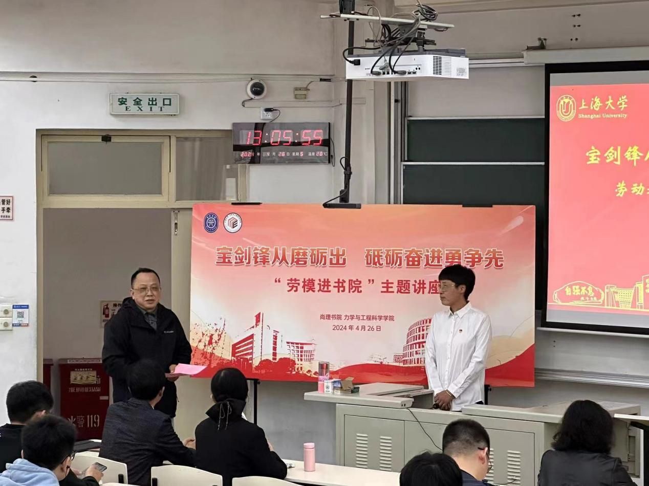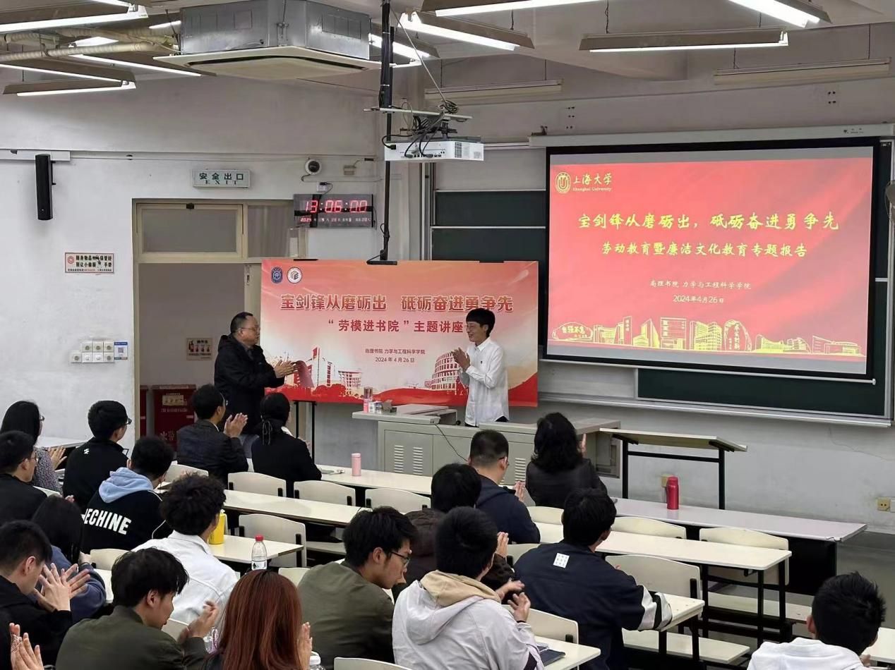 征途漫漫,劳不可缺。五一国际劳动节前夕,为全面学习贯彻党的二十大精神,将习近平总书记关于劳动精神的重要思想内化于心、外化于行,牢固树立劳动最光荣、劳动最崇高、劳动最伟大、劳动最美丽的观念,培养勤俭、奋斗、创新、奉献的劳动精神,4月26日下午尚理书院、力学与工程科学学院举办的“宝剑锋从磨砺出,砥砺奋进勇争先”劳模进书院暨廉洁文化教育专题报告于Beat365唯一官方网站宝山校区CJ207室举行。