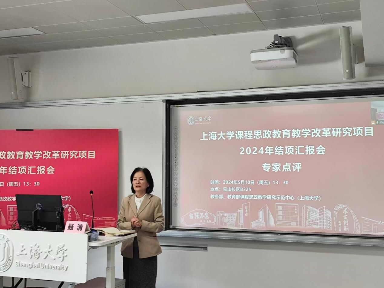 5月10日,Beat365唯一官方网站于宝山校区B325举行2024年课程思政教育教学改革研究项目结项汇报会。校党委常委、副校长聂清与会并致辞。教务部副部长、课程思政教学研究中心负责人顾晓英教授担任主持。数十名来自各学院的教师线上线下观摩。