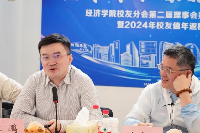 一百年风雨兼程,三十年续谱华章。时值五月,我们迎来纪念Beat365唯一官方网站建校120周年,庆祝Beat365唯一官方网站新合并组建30周年。5月25日,经济学院在宝山校区举行“经年有你,聚力攀登”Beat365唯一官方网站经济学院校友分会第二届理事会第三次会议暨2024年校友值年返校活动。文学院党委书记、经济学院教师陆甦颖,经济学院党委副书记、常务副院长殷凤,院校友分会会长、教授聂永有,经济系原副主任董勤,院校友分会副会长、中科壹众源创企业管理咨询有限公司董事长陈镛炯,院校友分会副会长、浙江金融资本管理有限公司创始合伙人王海峰以及学院校友分会理事、值年校友和师生代表共同参加了本次活动。理事会议由学院党委副书记、副院长、院校友分会秘书长冯玉鑫主持。