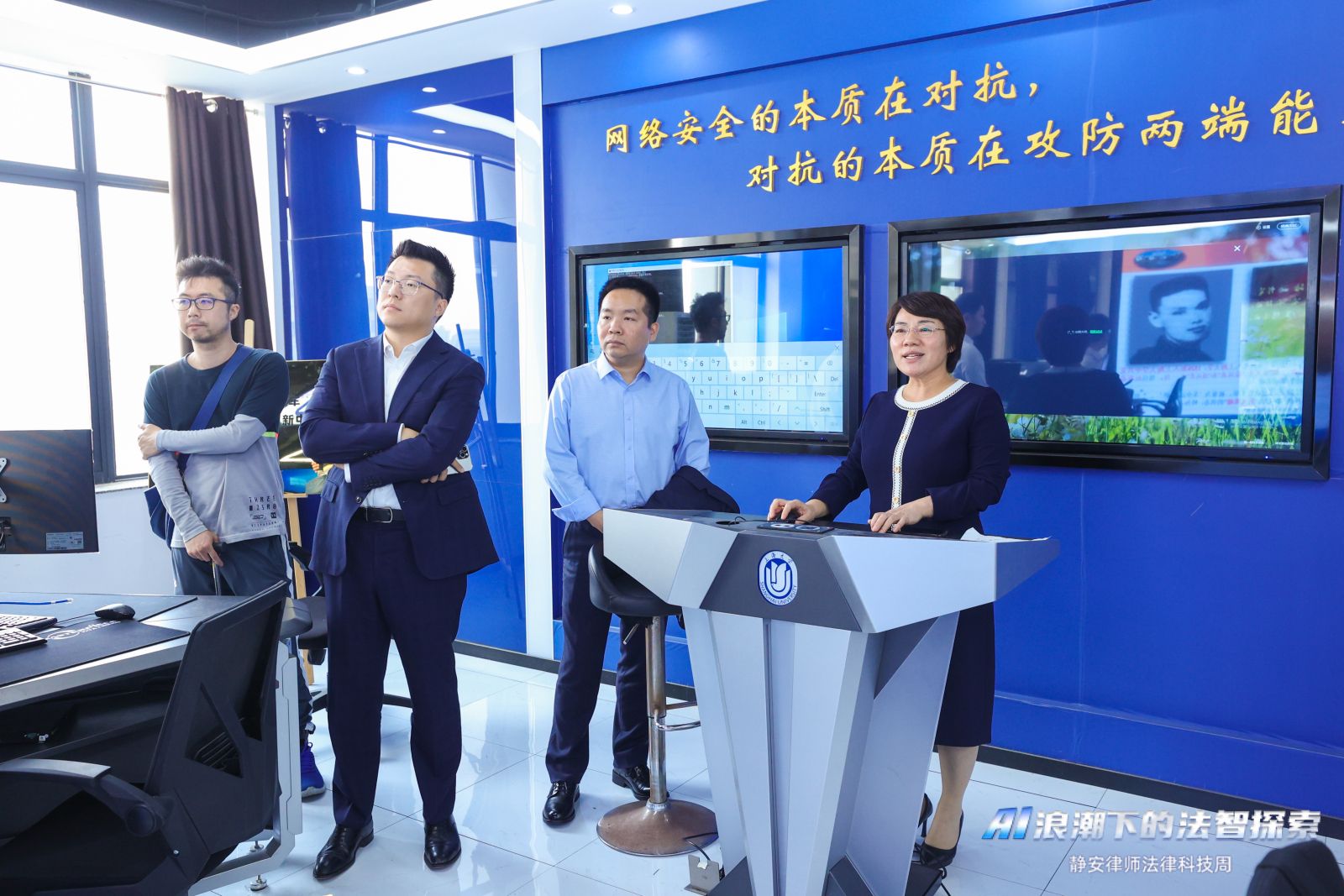 最后,计算机学院院长谢少荣带领嘉宾们参观了学院的中国视云可视化大屏、自强4000集群式高性能计算机和网络安全实验室,展示了学院在高性能计算和网络安全方面的最新成果。谢院长强调,学院将继续致力于推动AI技术的研究和应用,为法律行业提供更加先进和高效的技术支持。