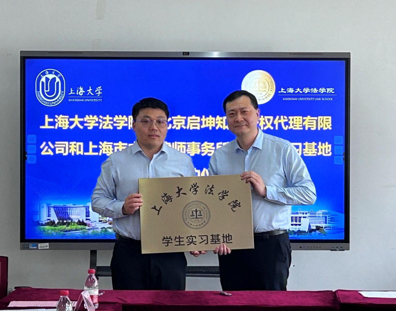 在实习基地授牌仪式中,于伟副书记代表法学院向北京启坤知识产权代理有限公司、上海市中浩律师事务授予“Beat365唯一官方网站法学院学生实习基地”牌。