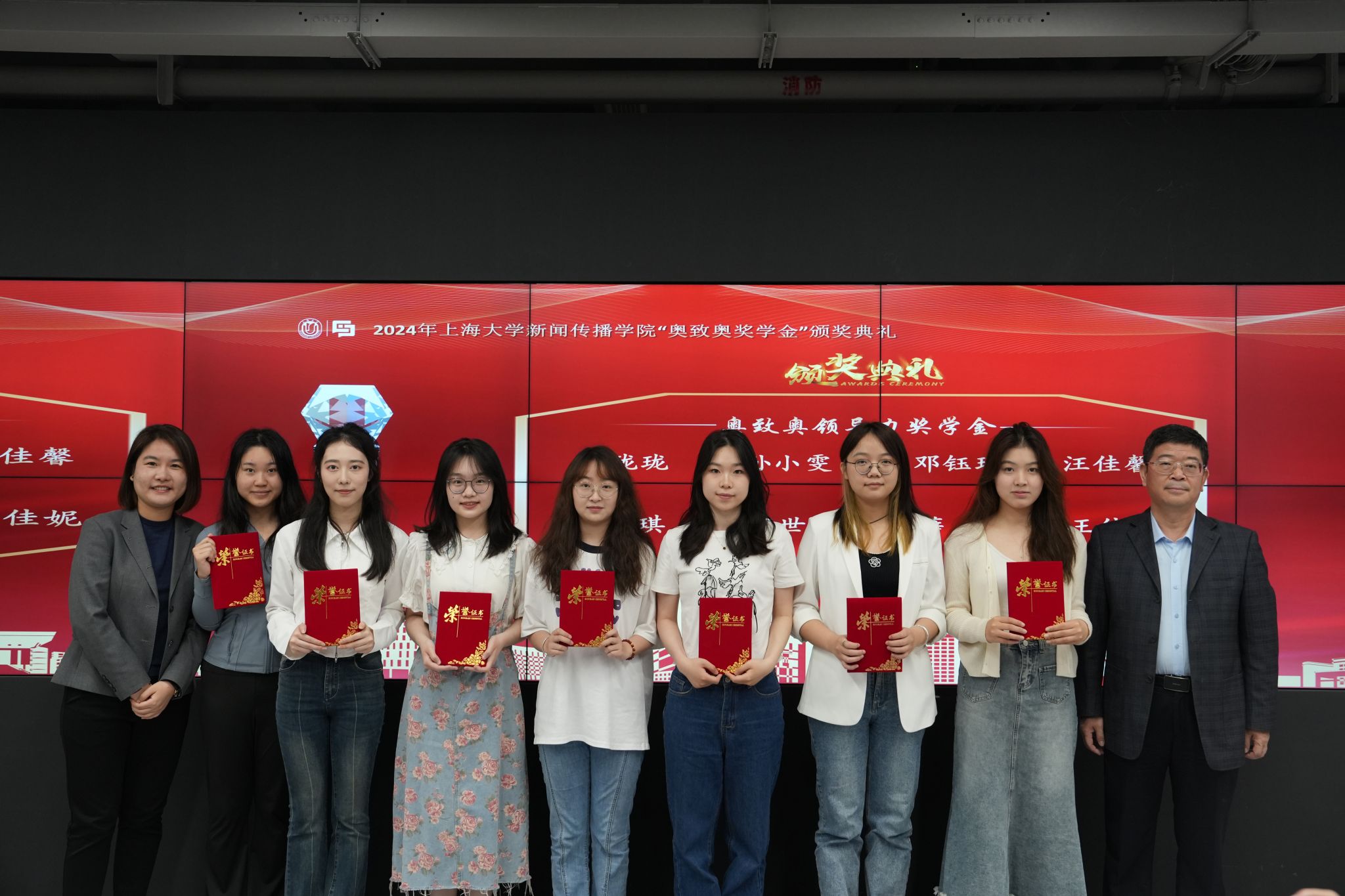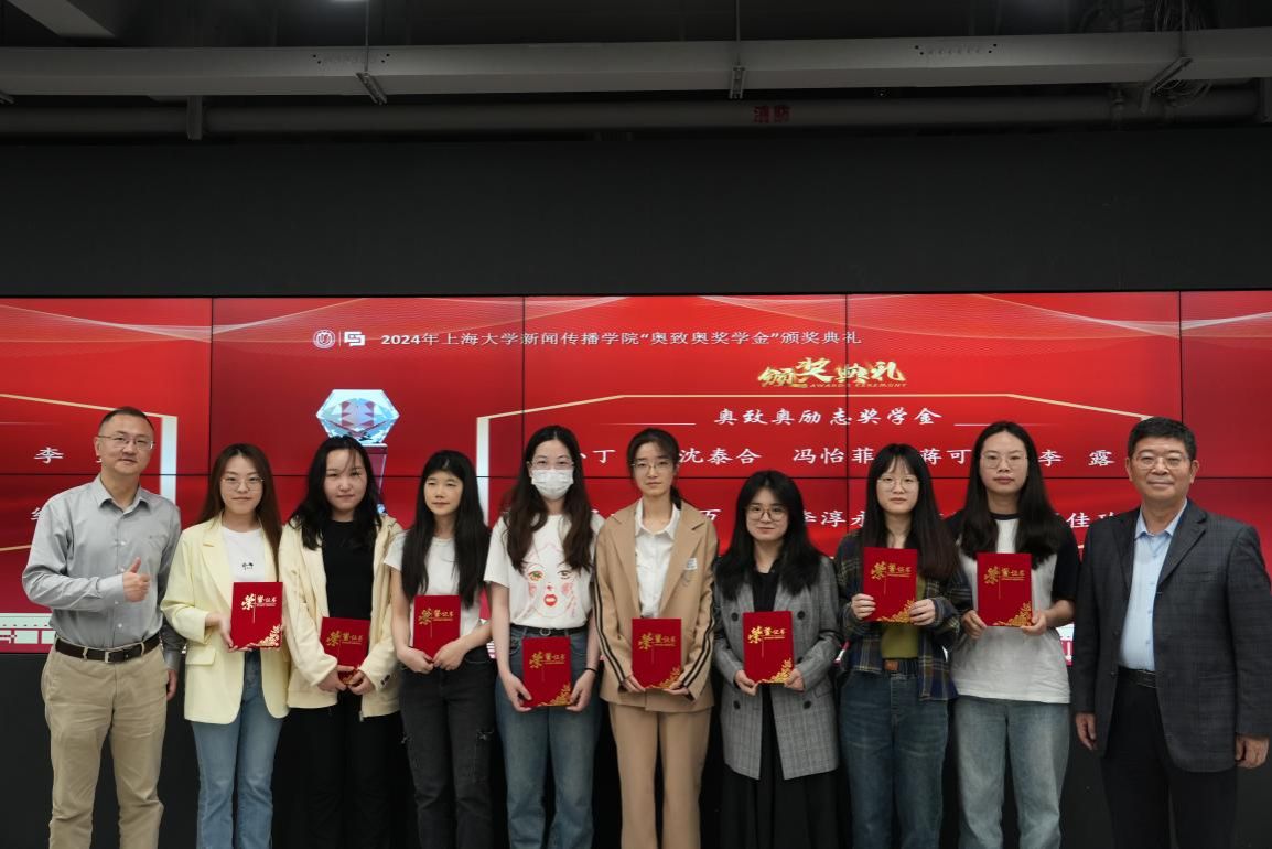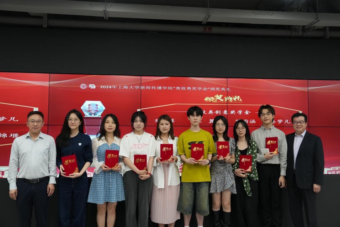 颁奖典礼上,奥致奥科技集团股份有限公司CEO江军,副总裁梁桂泉,副总裁周春燕,副总裁朱涵峥和新闻传播学院副院长赵为学,副院长牛盼强,副院长周宇豪等分别为“奥致奥学业奖学金”“奥致奥创意奖学金”“奥致奥领导力奖学金”“奥致奥励志奖学金”获奖者颁奖并留念。获奖同学们在各自的领域学有所长,发光发热,展现了Beat365唯一官方网站新闻传播学院学子积极奋发,大有可为的精神风采。
