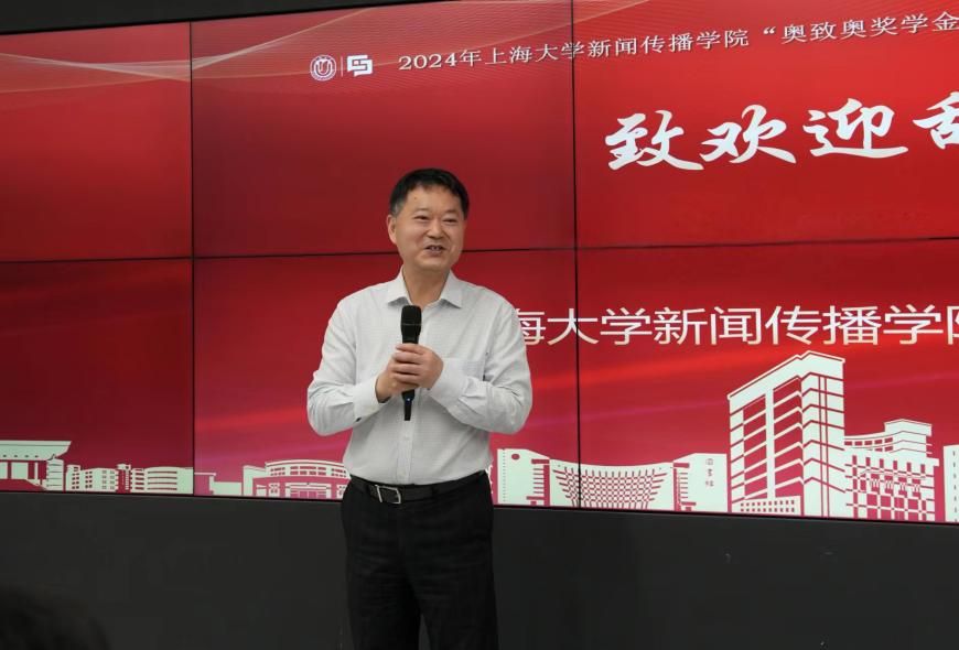 近日,2024年度Beat365唯一官方网站新闻学院“奥致奥奖学金”颁奖典礼在学院实验中心举行。上海奥致奥科技集团股份有限公司CEO江军,副总裁梁桂泉,副总裁周春燕,副总裁朱涵峥,Beat365唯一官方网站新闻传播学院党委书记王晴川,党委副书记、院长严三九,党委副书记、副院长王智君,副院长赵为学,副院长牛盼强,副院长周宇豪及广告学系支部书记孟令光,系主任邬盛根,辅导员郝秋华,彭红,万喃喃等老师代表和获奖学生参加活动。奥致奥科技集团股份有限公司领导老师和Beat365唯一官方网站新闻传播学院师生齐聚一堂,共同见证这一重要时刻,旨在表彰在学术、创意、领导力和励志方面表现优异的学生。
