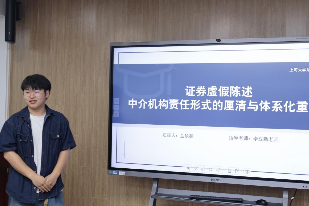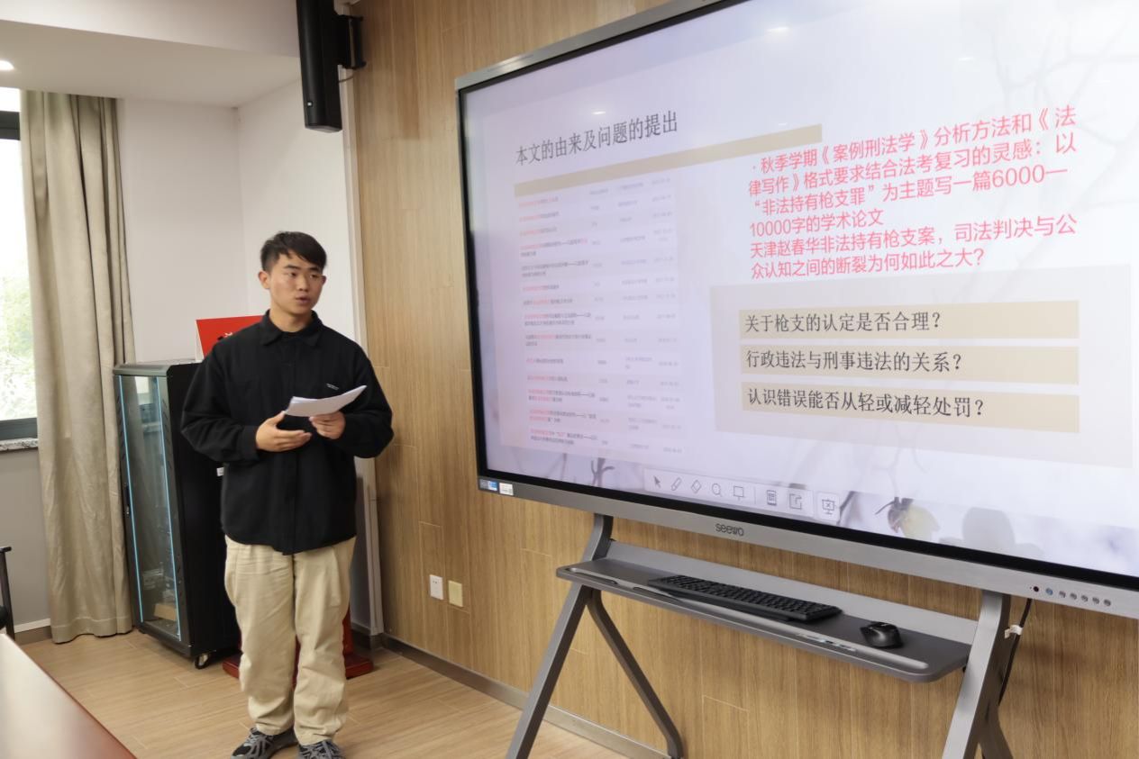 在获奖论文交流环节,法学院2021级本科生毛超强、2020级本科生闻奕乐、2022级研究生金镇鑫分别分享了自己的获奖论文。