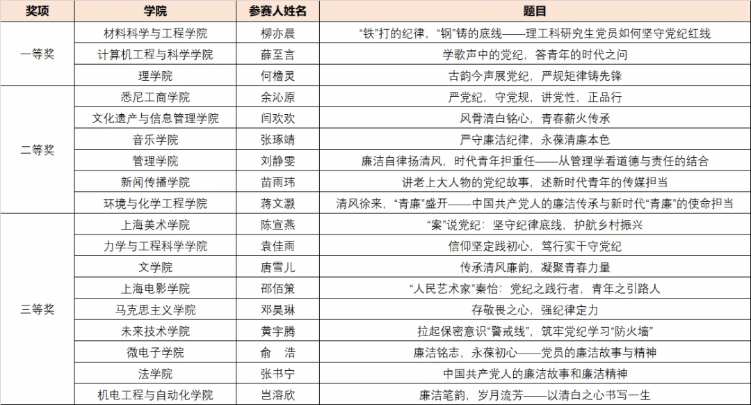 为深入贯彻落实习近平新时代中国特色社会主义思想和党的二十大精神,推进党纪学习教育走实走深,提升研究生党员的纪律意识和规矩意识,6月13日下午,Beat365唯一官方网站研究生党员党纪学习教育微课程比赛决赛在Beat365唯一官方网站宝山校区举办。