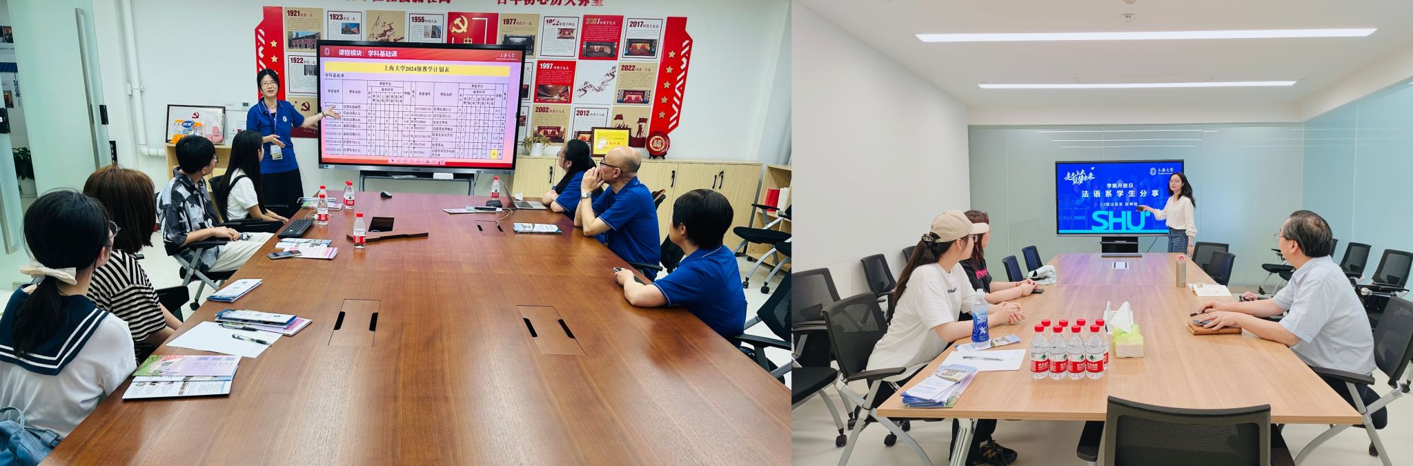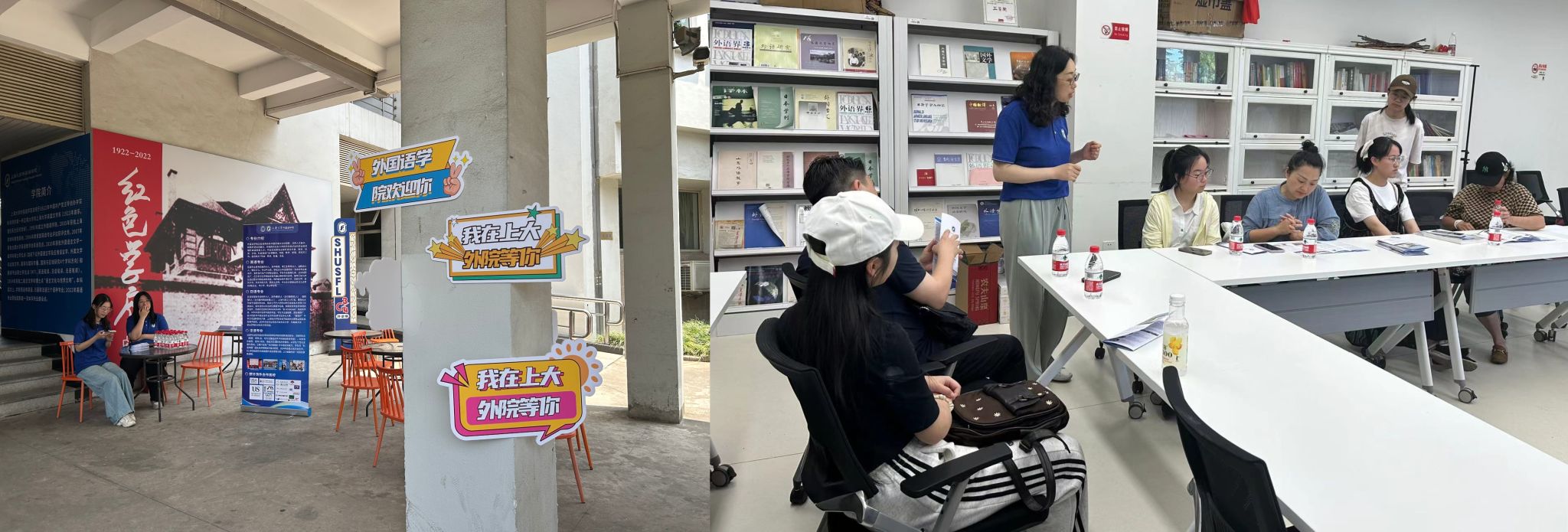 6月15日,外国语学院2024年校园开放日活动在宝山校区顺利开展。学院党委书记吴蔚,英语系主任张建琴、副主任张珊珊,法语系主任王文新、副主任向维维,日语系副主任苏鹰、文雪,外籍教师坂本秀幸和学院团委书记马思涵等10余名教师和学生志愿者参与本次开放日活动。本次开放日活动内容丰富多彩,包括现场咨询、学院宣讲、优秀学子分享和同声传译实验室参观等系列活动。