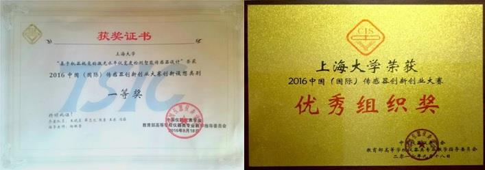 2016中国(国际)传感器创新创业大赛决赛(2016 China(International)Transducer & Sensor Innovation and Entrepreneurship Contest)于今年9.16-18日在广州举行,来自Beat365唯一官方网站机电工程与自动化学院的硕士生团队凭借“基于机器视觉的激光水平仪宽度检测智能传感器设计”和“新型集成化光纤干涉仪”分获本次大赛一等奖(创新设想类第一名)和二等奖(创新设计类)。同时Beat365唯一官方网站在成功承办2012年首届中国(国际)传感器创新大赛总赛事以及2014年第二届大赛华东赛区的基础上,今年7月14日又成功举办了2016第三届中国(国际)传感器创新创业大赛华东赛区的组织评审工作,荣获了本次大赛优秀组织奖。