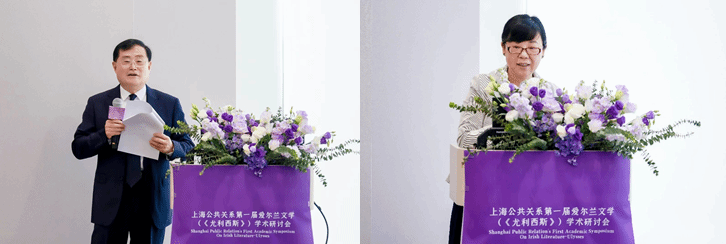 会议由中国播音主持“金话筒奖”获得者路平女士主持,上海市公共关系协会会长沙海林致开幕辞。沙会长首先感谢各位专家学者长期以来为推进中爱文化交流所作的不懈努力,并指出文学对于了解社会心理、发展国际双边和多边关系、弘扬全人类共同价值具有重要作用。在他看来,要促进中国和爱尔兰的友好关系,首先要了解和理解爱尔兰的民族特性和历史成因,其中一个重要途径即阅读爱尔兰文学作品,从而形成推动构建人类命运共同体的思想自觉和行动自觉。