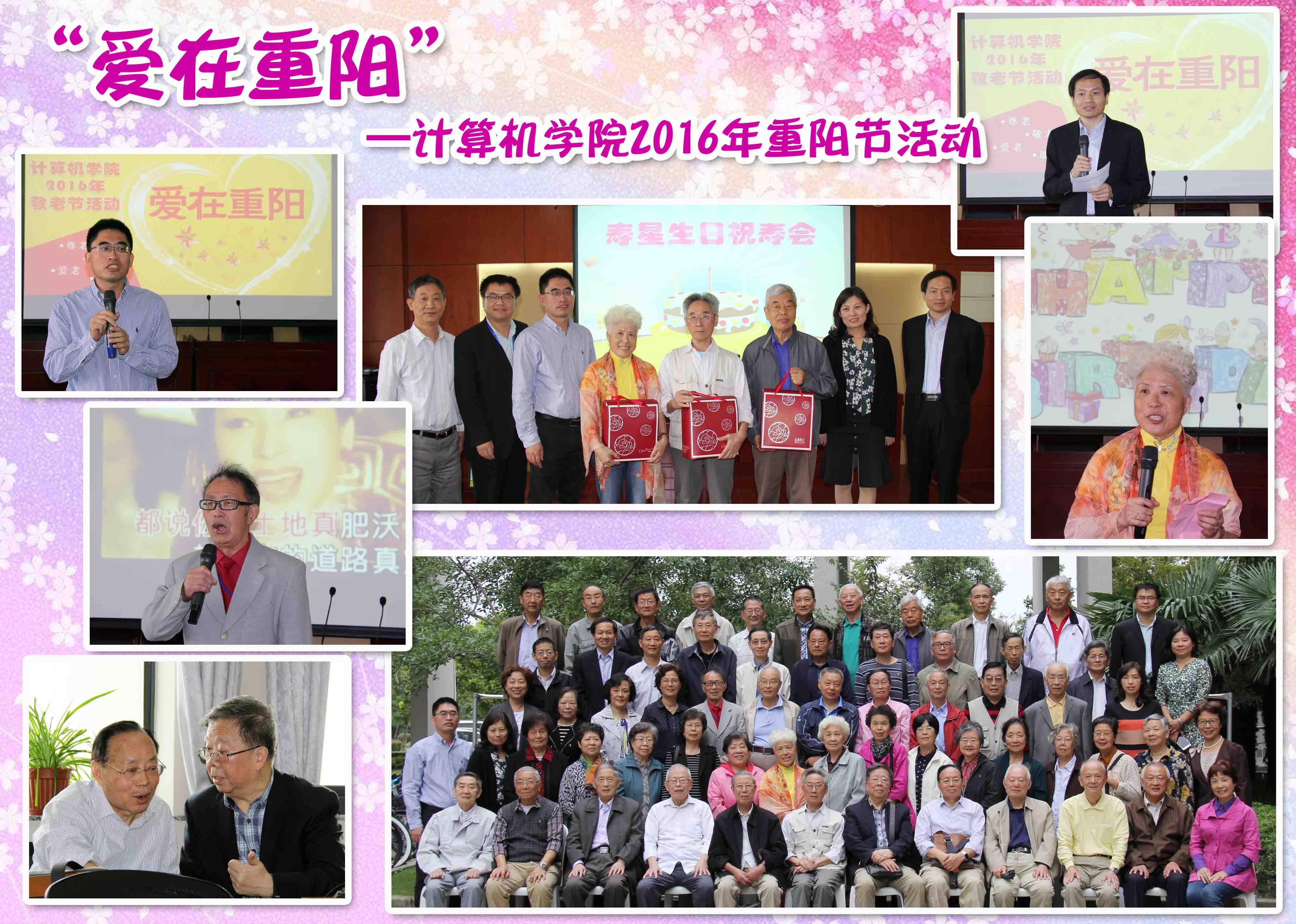 10月12日上午,学院在计算机大楼1106会议室举行了隆重的 “爱在重阳”敬老节庆祝活动,本次活动由学院分工会主席李青老师主持。活动伊始,党委书记郭纯生致辞,表达了对各位退休教师们深深的谢意以及美好的祝愿,并将学院一年来的发展向老同志们做了介绍。敬老活动的保留节目是为一些七、八十高寿的老师们过集体生日,学院教师代表为老寿星们送上生日礼物和祝福,大家庭其乐融融的氛围感染了在场的每一位。各位老同志互相之间谈笑言欢,一起缅怀着青葱岁月里的教育时光,眼里充满对过往岁月的美好回忆以及对许久未见的老同事的亲切之情。一张全体大合影,定格了每一位灿烂的笑容,作为回娘家聚会的纪念。