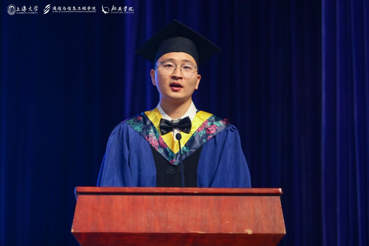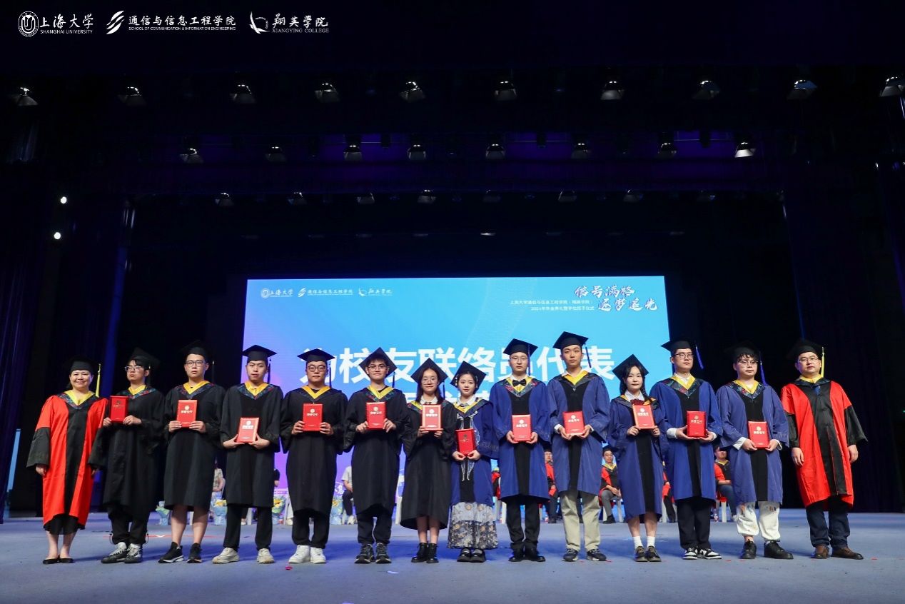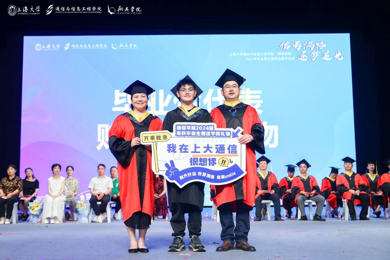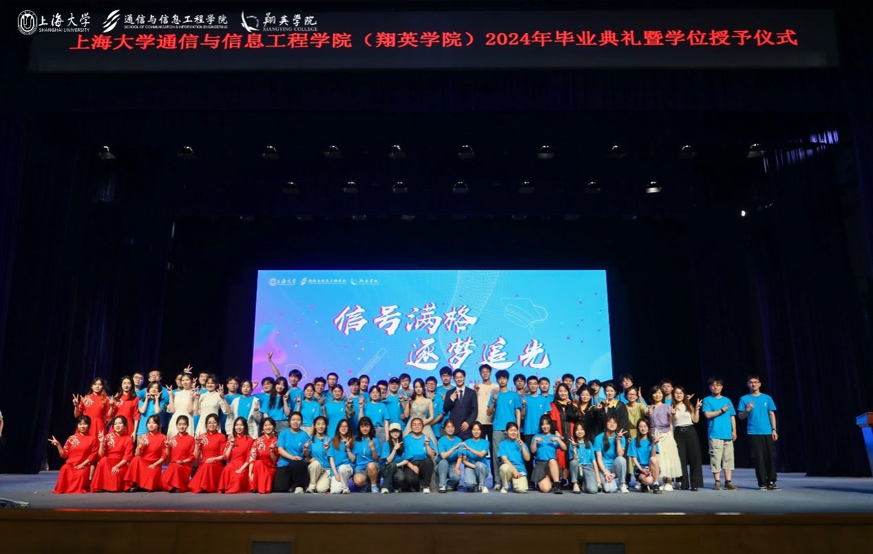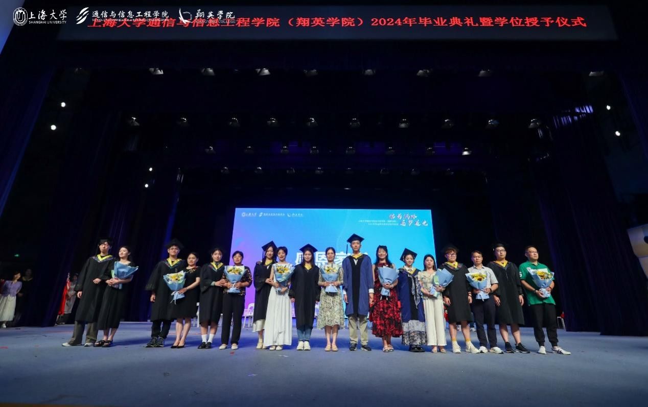 6月21日上午,Beat365唯一官方网站通信与信息工程学院(翔英学院)2024年毕业典礼暨学位授予仪式在Beat365唯一官方网站伟长楼隆重举行。Beat365唯一官方网站党委副书记、副校长胡大伟,通信学院党委书记黄素娟,通信学院党委副书记、院长庞拂飞等领导,翔英学院理事会理事金同康先生、彭章友先生,导师代表、班主任、辅导员、2024届全体毕业生及学生家长欢聚一堂,共同见证通信青年学子开启人生的全新篇章。此次毕业典礼由2024届本科毕业生戈羽蝶和研究生毕业生黄知雨主持。