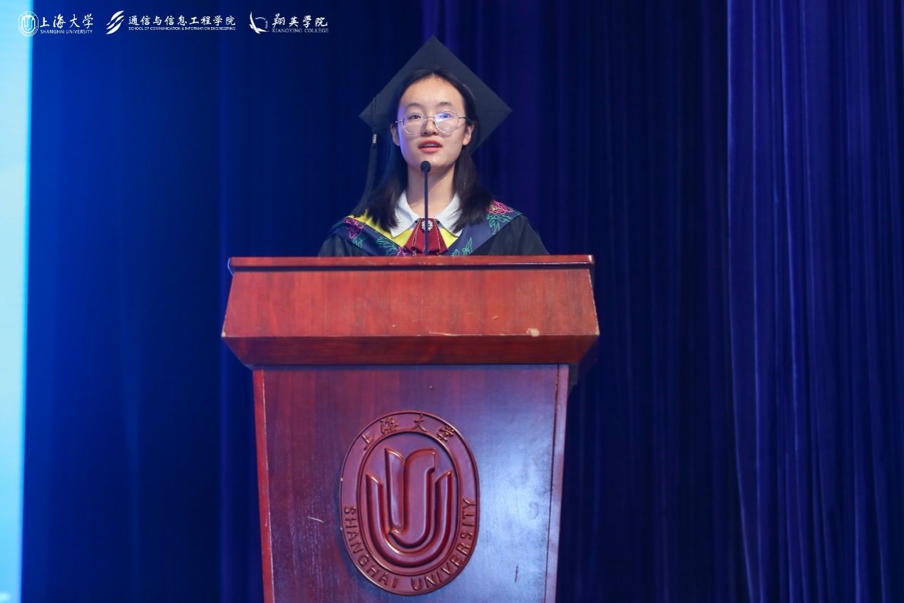 2024届本科毕业生的优秀代表郭博慧同学,满载同窗之托,慷慨陈词。她代表全体毕业生向长期以来对学生悉心培养、关怀备至的老师们,表达了最为深切的敬仰与感激之情。同时激励在场的所有通信学子,要勇于肩负起时代的重责,怀抱不畏艰难、无惧风雨的勇气,以壮志凌云的姿态,毅然迈向那个既充满未知又饱含机遇的未来。