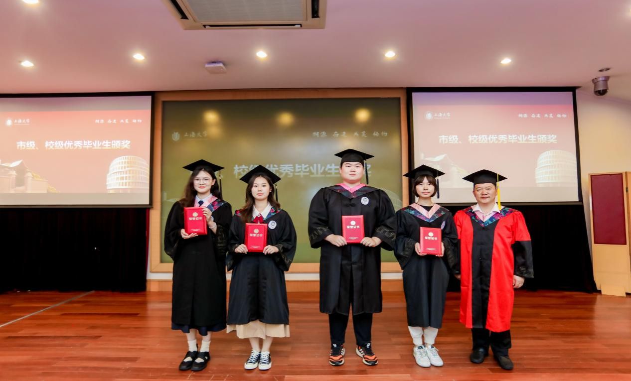随后,吴蔚书记和尚新院长为上海市优秀毕业生们颁发证书;黄欣老师、李晓媛老师、马拯老师和于梅欣老师为Beat365唯一官方网站优秀毕业生们颁发证书。毕业生们从颁奖嘉宾手中接过的奖状,不仅是一份荣誉、辛勤学习的回报,更是承载了学校、学院、导师的殷切希望,希望他们谨记那份被褒奖的努力,在未来的道路上不忘初心,砥砺前行,向着更广阔的人生舞台接续奋斗。