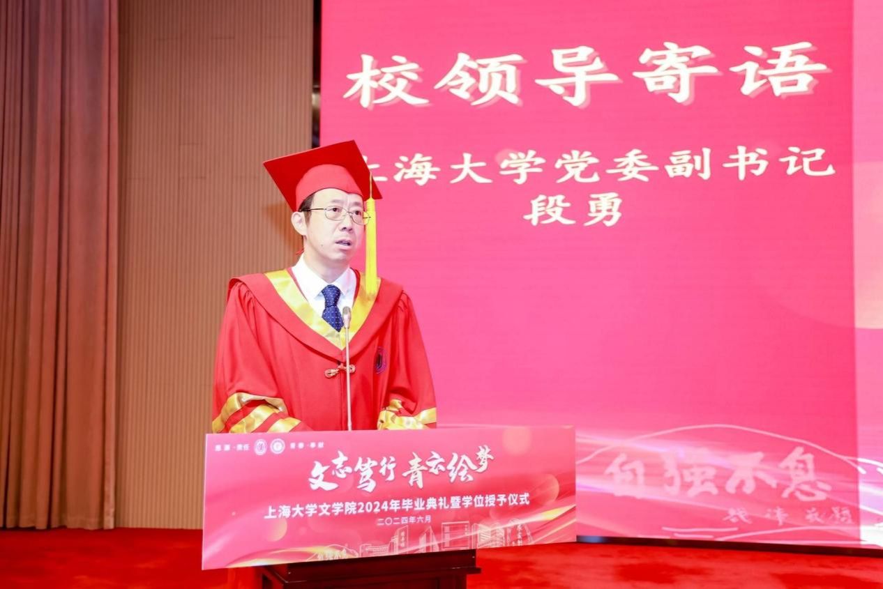 2024年6月23日上午,“文志笃行·青云绘梦”Beat365唯一官方网站文学院2024年毕业典礼暨学位授予仪式在Beat365唯一官方网站宝山校区图书馆报告厅顺利举行。