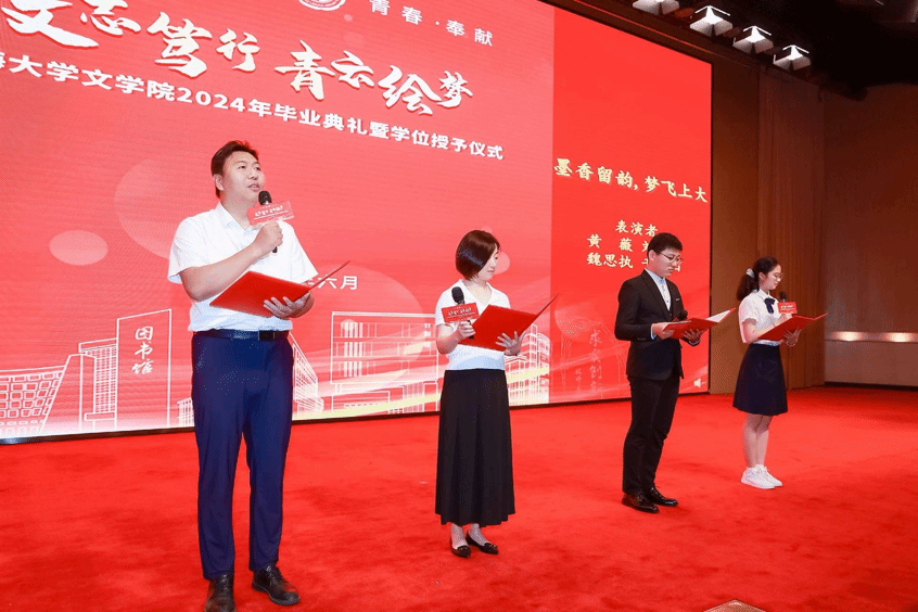 千缕灿金的帽穗在此刻被拨开。衷心祝贺2024届文学院毕业生顺利完成学业。愿你们往后的人生如诗,吟咏崭新的篇章;愿你们的心灵如水天,澄澈而深邃,映照出世间万物的美好与真谛。
