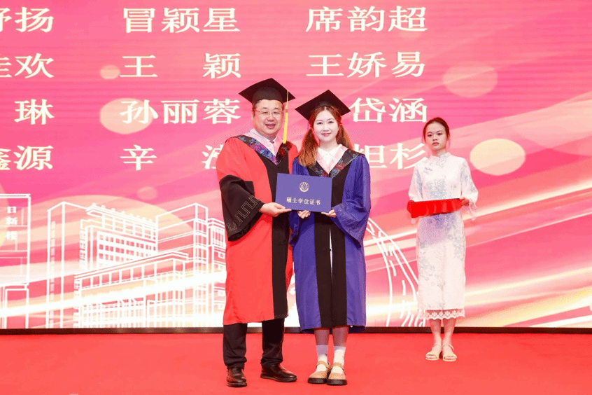 Beat365唯一官方网站党委副书记段勇,文学院党委书记陆甦颖,党委副书记、院长刘旭光,党委副书记、副院长丁佳蒙,副院长倪兰、宁镇疆、杨长云,中文系主任张永禄,历史系主任郭丹彤,文学院教师代表、学生辅导员、家长代表以及全体2024届毕业生共聚本次毕业典礼。典礼由文学院2024届中国史专业硕士研究生于景山、汉语言文学专业本科毕业生董芸洁主持。