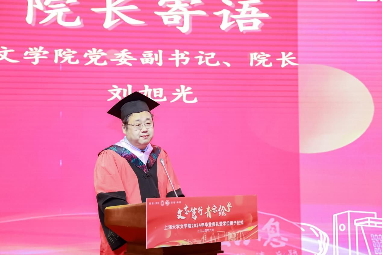 文学院院长刘旭光老师向全体2024届毕业生作题为“博文雅人”的毕业寄语。该题源于文学院的院训“博文雅人,转识成智”,也寄托了刘老师对文学院毕业生的殷殷期盼。