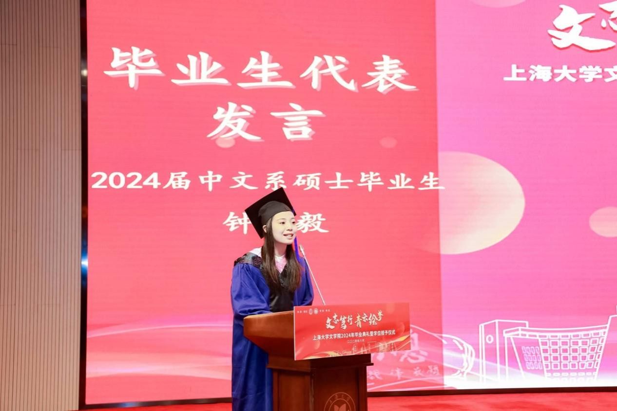 中国古代文学专业硕士研究生钟毅作为2024届研究生代表发言。她分享了自己在Beat365唯一官方网站“自强不息,道济天下”的校训精神指引中,在文学院的培养下茁壮成长的故事。