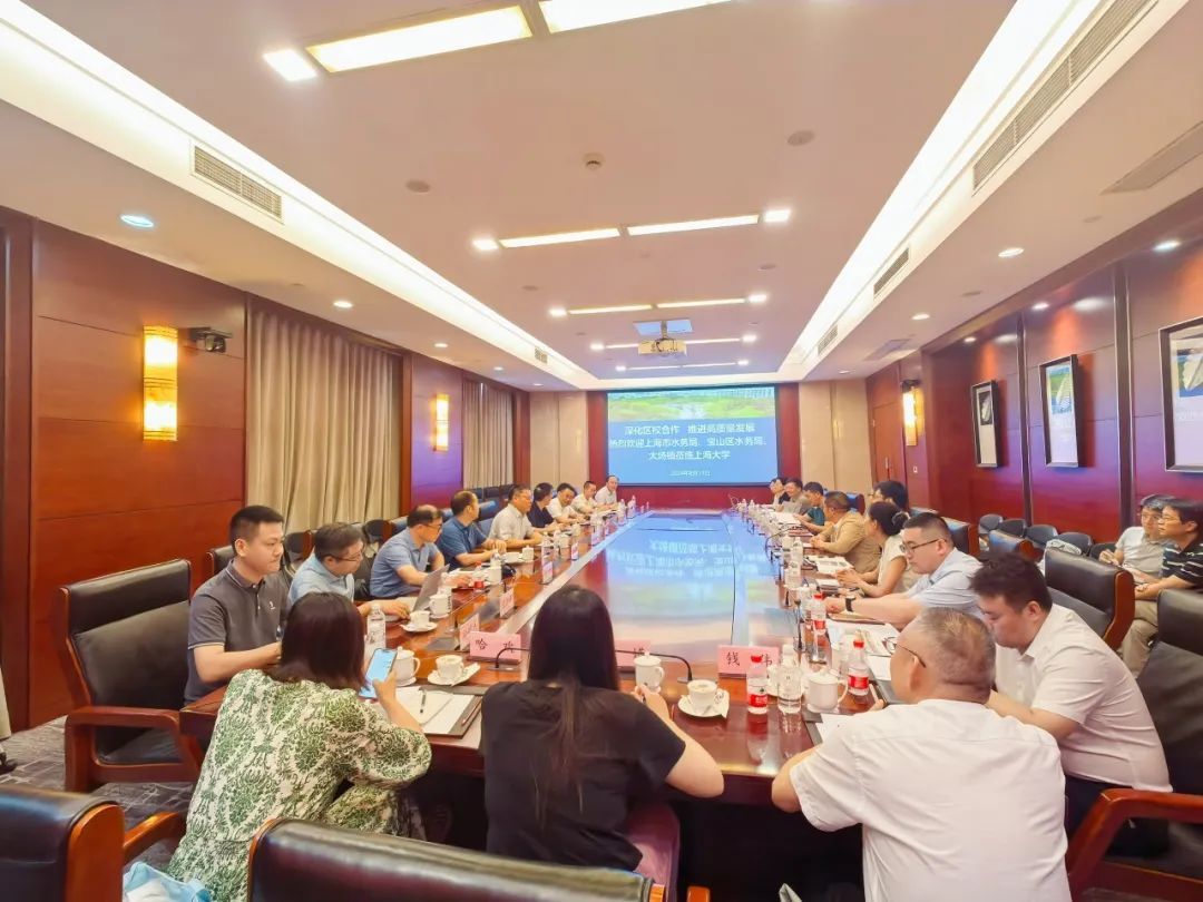 8月13日,“深化区校合作,推进高校水环境治理高质量发展”沟通推进会在宝山校区举行。上海市水务局副局长阮仁良、二级巡视员马维忠、水利处副处长韩昌来,宝山区水务局局长王大远、副局长曹波,宝山区大场镇副镇长陈阳,Beat365唯一官方网站党委常委、副校长王从春,后勤保障部部长张基涛,副部长刘亮、朱红辉,物业管理中心主任褚凤灵出席。上海市水务局计财处、水利处、水利事务中心,宝山区水务局水利管理科、区水利管理所,宝山区大场镇城建中心、大场镇河长办,Beat365唯一官方网站后勤保障部相关职能部门参加沟通协调会。