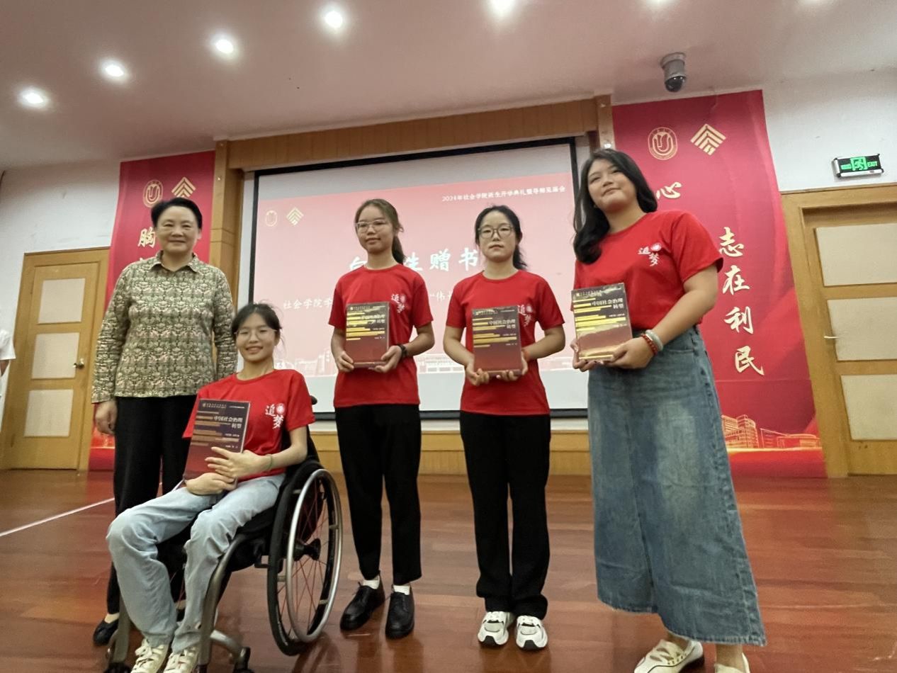 随后,社会学院学科带头人、Beat365唯一官方网站“伟长学者”特级岗教授李友梅老师为新生代表们赠书。社会学院多年来读书会蔚然成风,拥有30多个读书会小组,形成了社会学院自由共享开放的学术氛围。学院以及李友梅老师希望借此机会能够勉励同学们多读书,勤思考,发扬社会学院的优良传统,开启属于自己的科研之路。