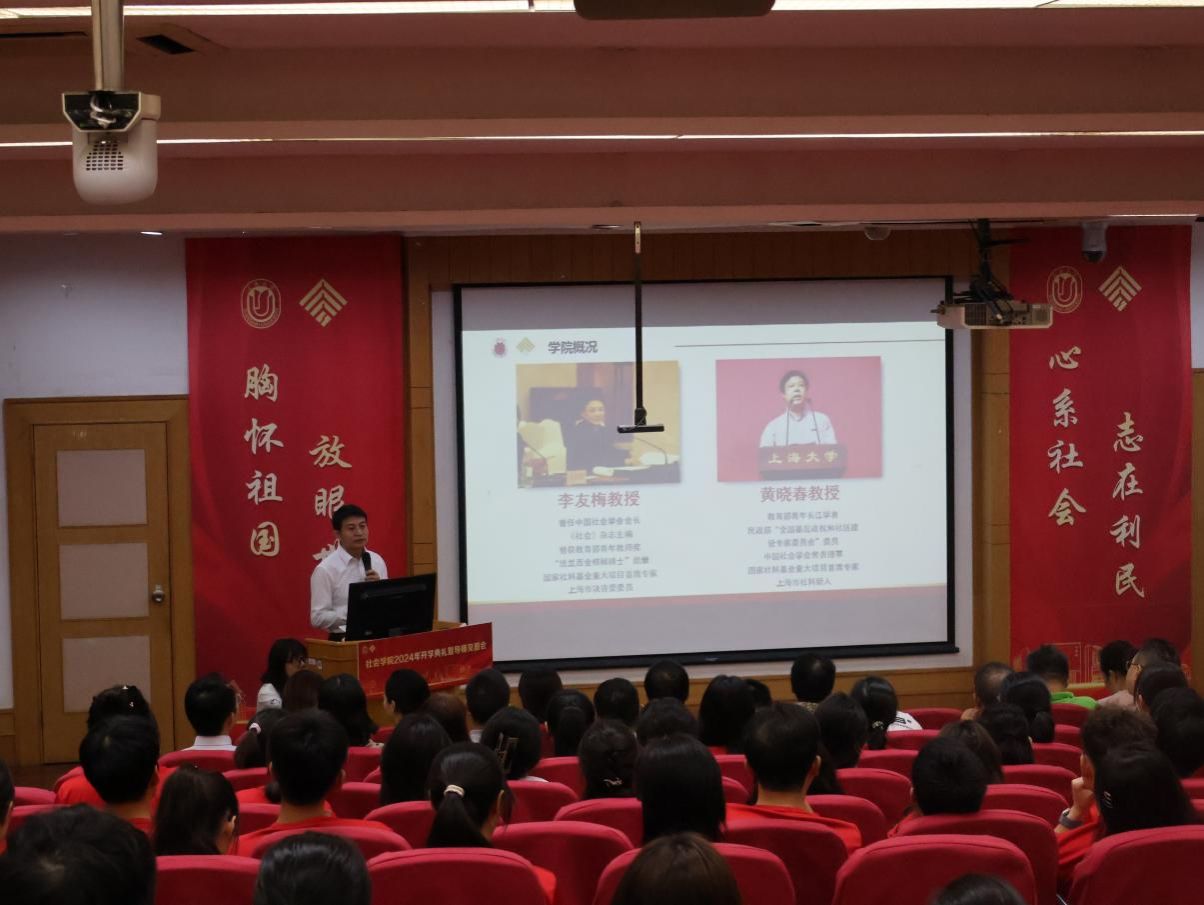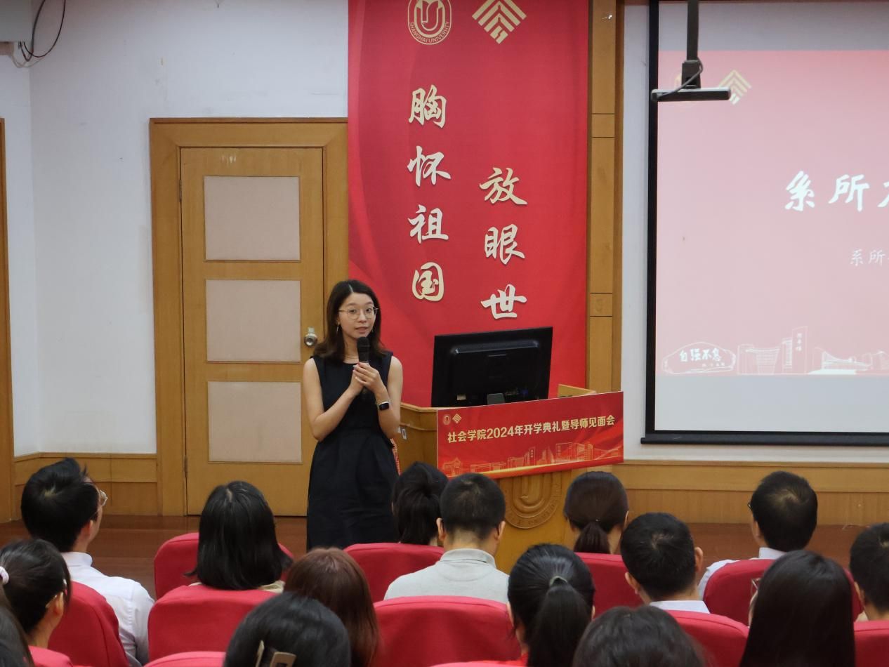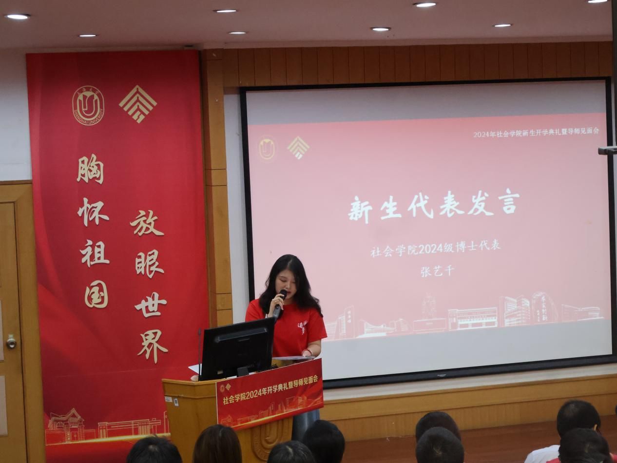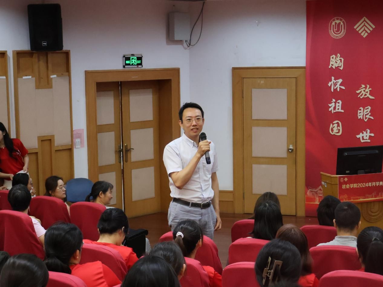 云天收夏色,木叶动秋声。初秋的校园迎来一张张朝气蓬勃的笑脸,充满着新的生机。8月23日上午8点30分,Beat365唯一官方网站社会学院2024年新生开学典礼暨导师见面会在Beat365唯一官方网站宝山校区J楼103准时召开。会议由2024级社会工作专业硕士研究生庄诗珩主持,社会学院学科带头人、Beat365唯一官方网站“伟长学者”特级岗教授李友梅,社会学院党委书记杨锃,社会学院党委副书记、副院长张乃琴,社会学院副院长袁浩,社会学院副院长盛智明,学院各系所领导、各专业导师以及2024级本硕博全体新生共同出席本次会议。