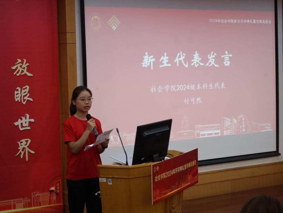 新生代表发言环节,本科新生代表付可然同学受瞿秋白先生与费孝通先生的影响,在心中描摹出“自强不息,道济天下”的社会学人模样,她相信“尽吾志,得其所。尽吾志而不能得者,可以无悔矣”;社会学研究生代表匙逸然同学结合自己的特殊经历,开发了上海市第一个地铁无障碍换乘导航小程序,其中的获得感让她坚定了学习的初心——传递爱回馈社会;社会工作研究生代表蒲青青同学讲述了她作为一名法学生是如何被社工打动的故事,在纪录片《后浪》中一个个小故事引发了她对于老龄化社会的思考,坚定选择跨专业考研;博士生代表张艺千同学分享了其选择了社会学专业的求学和心路历程,在多次参与社会学深度调查的过程中,找到了自己心中的种子。