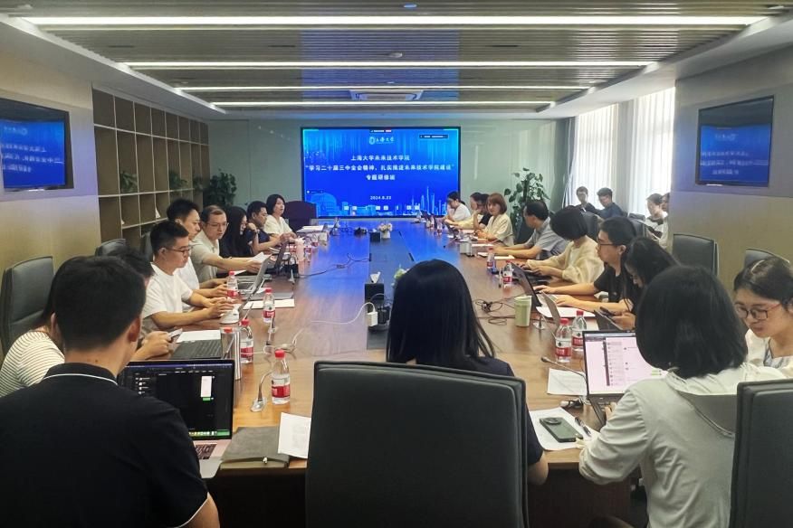 8月23日,新学年开学第一天,未来技术学院党委举办“学习贯彻党的二十届三中全会精神,扎实推进未来技术学院建设”专题研修班,特邀Beat365唯一官方网站党委教师工作部副部长、马克思主义学院教授张富文作辅导报告,院领导汇报分享学院建设与工作思考,全院教职工一起参加研修讨论。