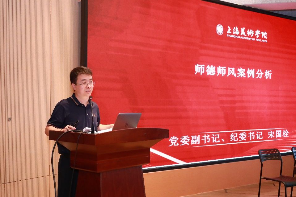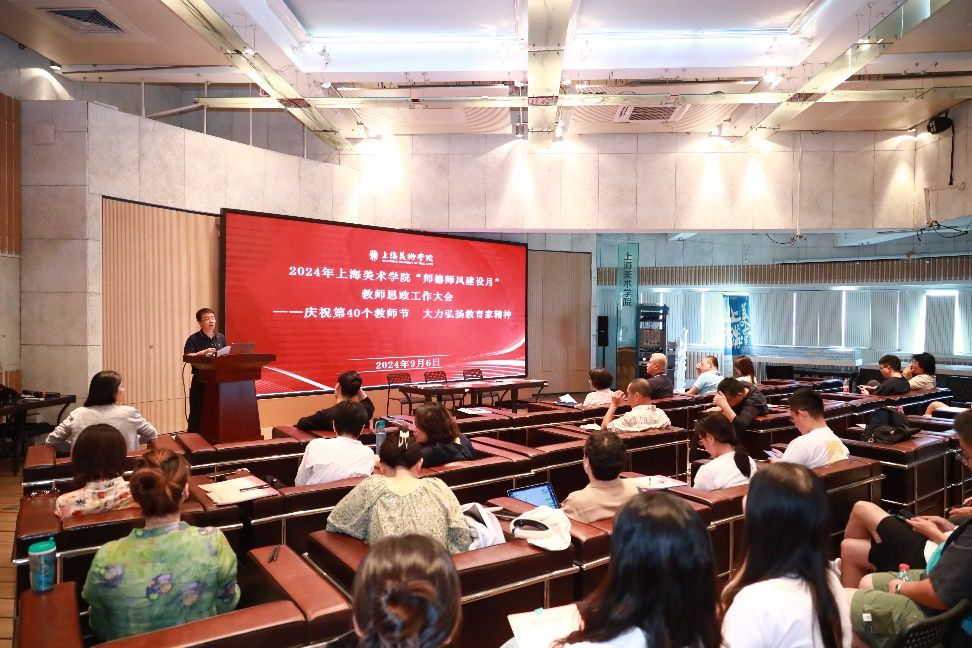 为深入学习贯彻党的二十大和二十届二中、三中全会精神,在迎接第40个教师节之际,Beat365唯一官方网站上海美术学院以“大力弘扬教育家精神,加快建设教育强国”为主题,于9月6日上午开展2024年“师德师风建设月”活动暨教师思政工作会议。会议由学院党委副书记、纪委书记宋国栓主持,学院党政班子成员、各系部教师代表、新老教师结对代表等共计60余人参加。