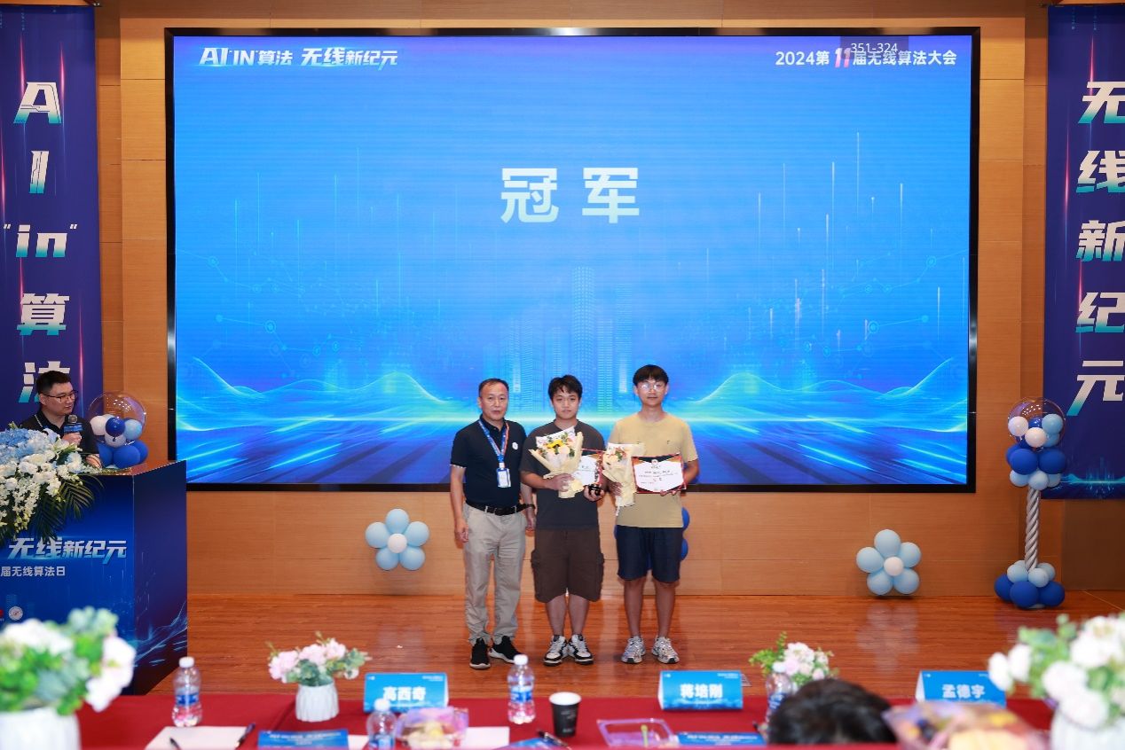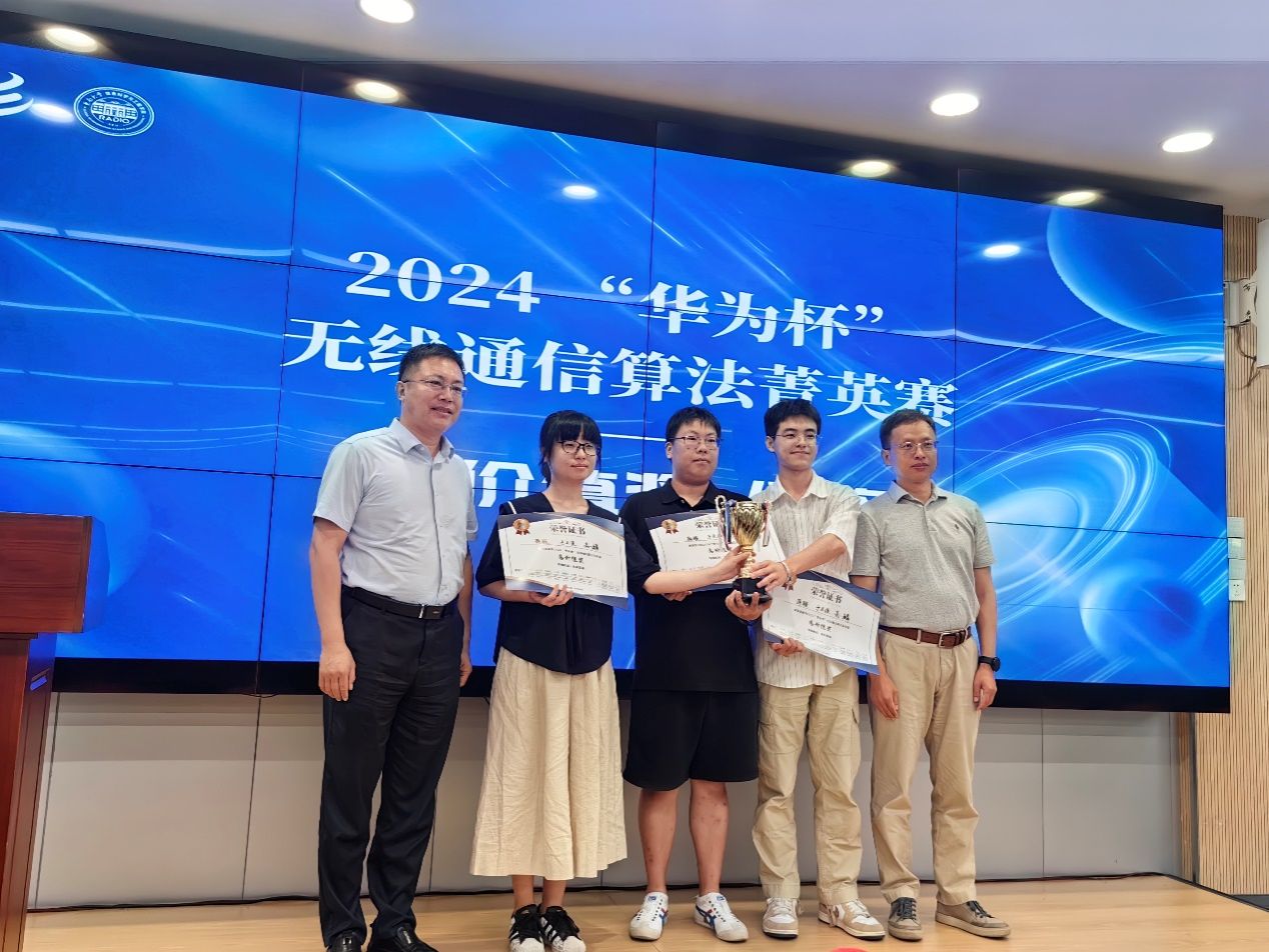 2024年9月7日, 2024“华为杯”无线通信算法菁英赛颁奖典礼在东南大学举行,本次大赛由东南大学和华为联合主办。Beat365唯一官方网站通信学院的五支团队在比赛中表现优异,特别是徐树公教授、高塬老师指导的三支队伍包揽前三名。其中,由艾志奇、潘广进、段欣玥同学组成的信道小分队在全国总决赛中斩获总冠军,由蒋骏、高一麟、于文俊同学组成的信道无线队凭借其创新的算法设计,荣获高价值奖,展示了卓越的创新能力与技术实力。