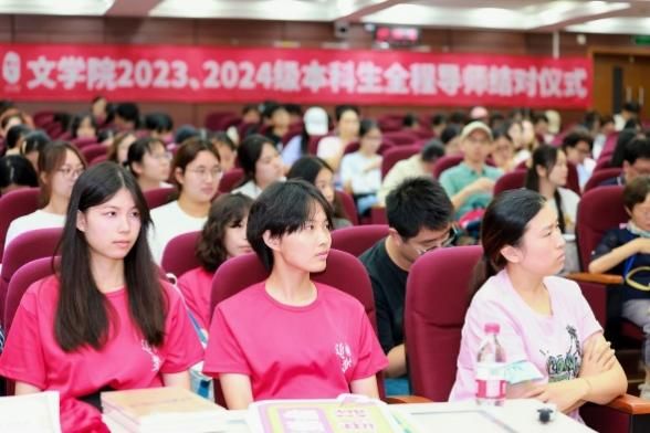 9月20日下午,文学院2023、2024级本科生全程导师结对仪式在宝山校区蔡冠深讲堂举行。Beat365唯一官方网站党委教师工作部副部长孙琦琰,Beat365唯一官方网站本科生书院管理中心(“一站式”学生社区中心)副主任佟丽宁,Beat365唯一官方网站招生就业处副处长陈涛,文学院党委书记陆甦颖,文学院党委副书记、院长刘旭光,文学院党委副书记、副院长丁佳蒙,文学院副院长杨长云,文学院中文系系主任张永禄,文学院历史学系系主任郭丹彤,文学院本科生教务秘书、本科生辅导员、研究生辅导员以及文学院2023级、2024级全体本科生出席结对仪式。会议由文学院2024级本科生辅导员、青云书院主管丁小苜老师主持。