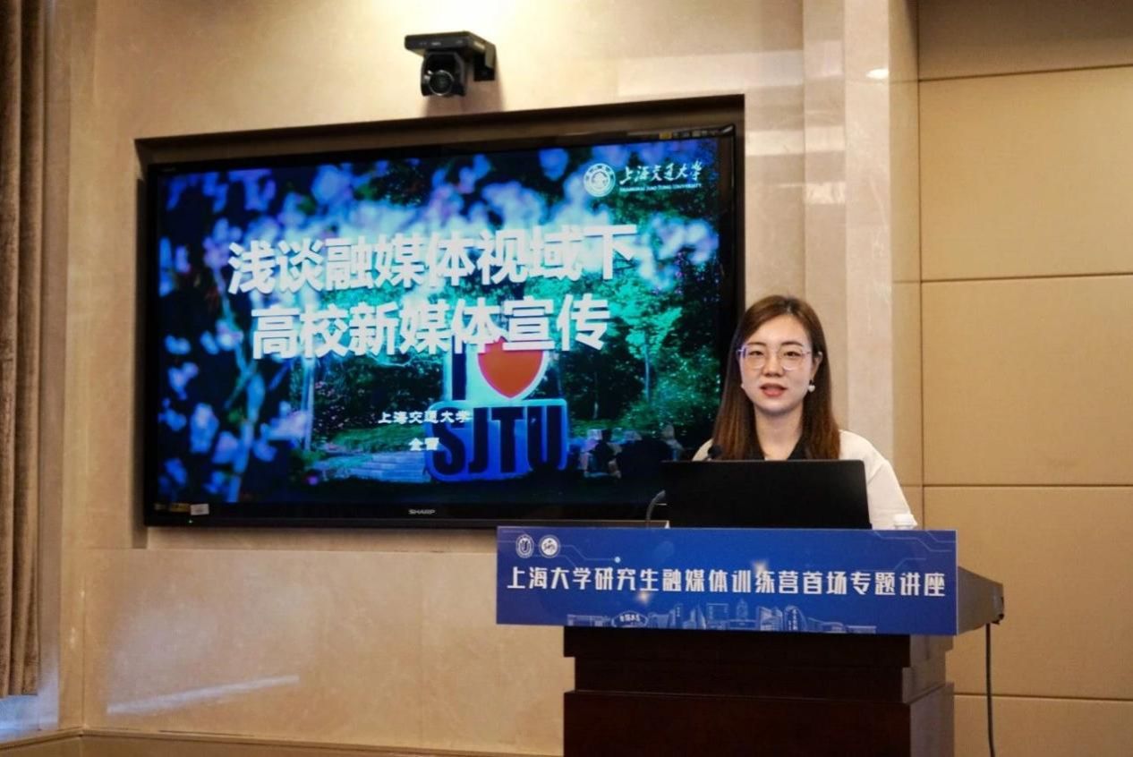 研究生融媒体训练营首场专题讲座特邀上海交通大学党委宣传部新媒体主编、教育部“全国网络教育名师”金雪老师带来题为《浅谈融媒体视域下高校新媒体宣传》的专题报告。