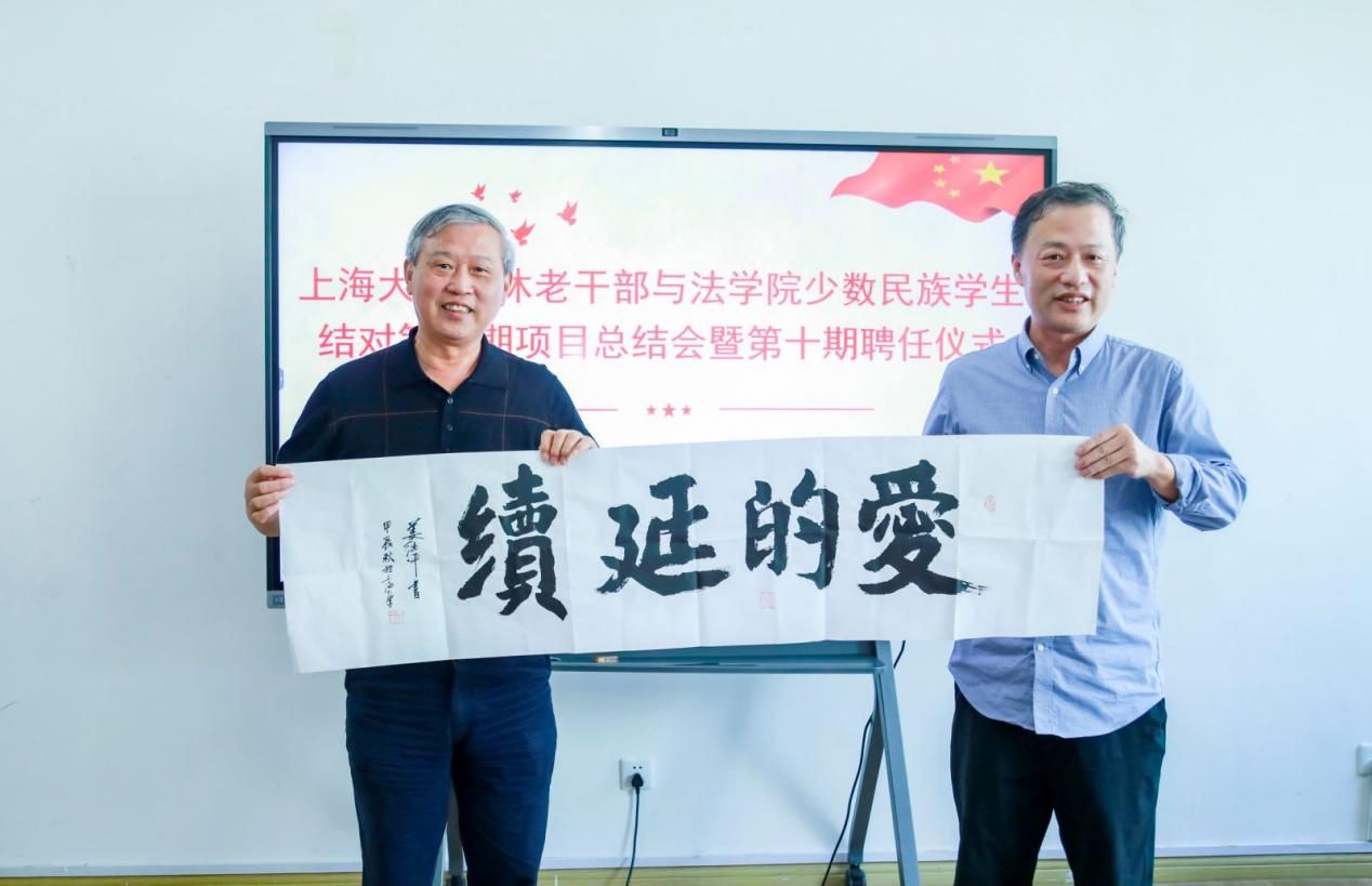 本期结对活动中,结对教师姜继平赠送“爱的延续”纪念书法一幅,法学院党委书记徐国明为其颁发捐赠证书。