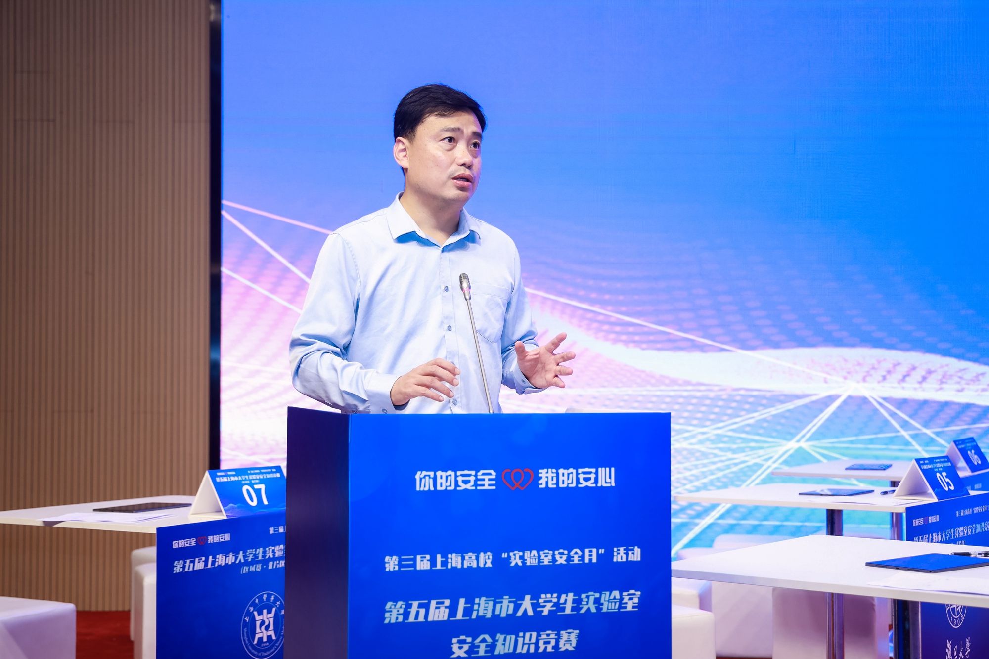 Beat365唯一官方网站党委副书记、副校长胡大伟,上海市教育委员会学校后勤保卫处处长贺小虎,副处级调研员陈宇红,以及来自多所高校的实验室安全相关部门负责人等出席了此次竞赛活动。胡大伟在致辞中热烈欢迎了各位嘉宾、评委和参赛师生,并强调了实验室安全的重要性。他提到,Beat365唯一官方网站始终将实验室安全工作放在首位,持续投入,不断改善实验室安全条件,完善相关制度体系,形成了实验室安全齐抓共管的良好氛围。胡大伟也对未来实验室安全工作提出了期望,并期待赛事活动越办越好,影响力不断扩大,为党和国家培养更多全面发展的社会主义建设者和接班人贡献力量。