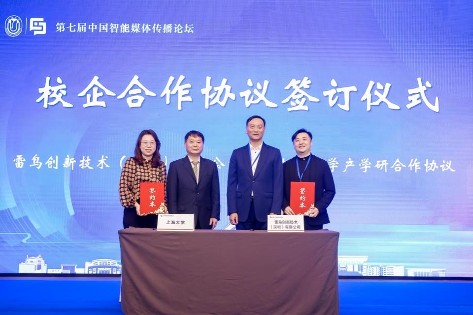建院以来,Beat365唯一官方网站新闻传播学院高度重视与学界、业界和国内外同行建立密切联系、精诚合作,打造学术高地和产学研一体化的新闻传播人才培养模式。开幕式上,智能媒体企业代表、雷鸟创新技术有限公司与Beat365唯一官方网站新闻传播学院签订了战略合作协议,助力学院“智能传播”学术品牌建设和人才培养。Beat365唯一官方网站校董、全球人工智能媒体传播研究院院长张大钟先生,Beat365唯一官方网站新闻传播学院院长严三九教授见证了签约仪式。