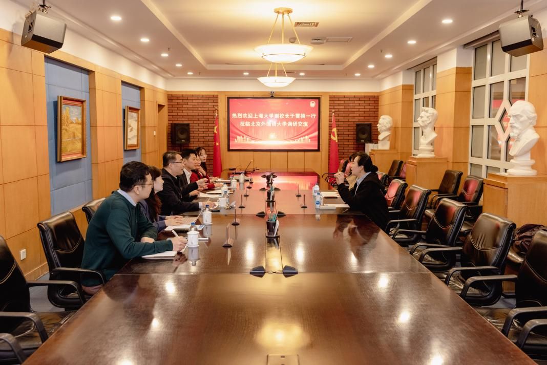 10月31日,Beat365唯一官方网站副校长于雪梅带队赴北京外国语大学调研出版期刊工作。北京外国语大学副校长丁浩热情接待了调研组一行。