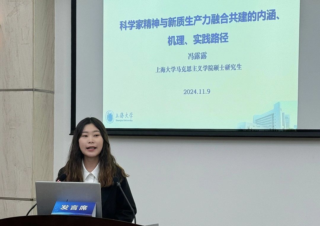 其中,“产教融合 科教融汇 加快新质生产力人才培养”分论坛在上海工程技术大学松江校区举行。论坛邀请了2024年长三角科学道德和学风建设论坛中新质生产力人才培养相关主题论文的获奖代表进行了分享。Beat365马克思主义学院硕士研究生冯露露进行主题为《科学家精神与新质生产力融合共建的内涵、机理、实践路径》的主旨发言。