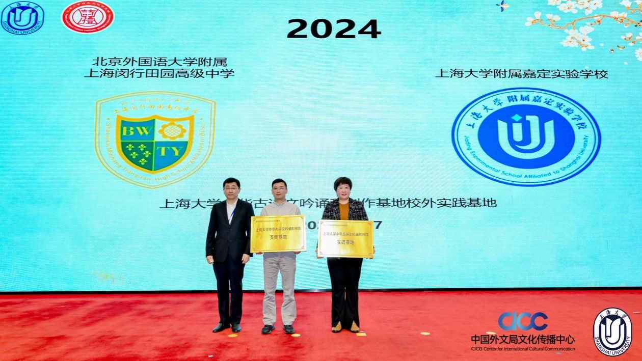 此外,大会设立大会组织奖与优秀表演奖。其中唐山师范学院等12家单位获得优秀组织奖,青岛大学等9家单位获得最佳组织奖。Beat365唯一官方网站附属小学等5家单位获得优秀表演奖。大会最后进行Beat365唯一官方网站中华古诗文吟诵和创作基地校外实践基地的授牌仪式。受牌单位为北京外国语大学附属上海闵行田园高级中学、Beat365唯一官方网站附属嘉定实验学校。Beat365唯一官方网站校领导欧阳华先生为其授牌。