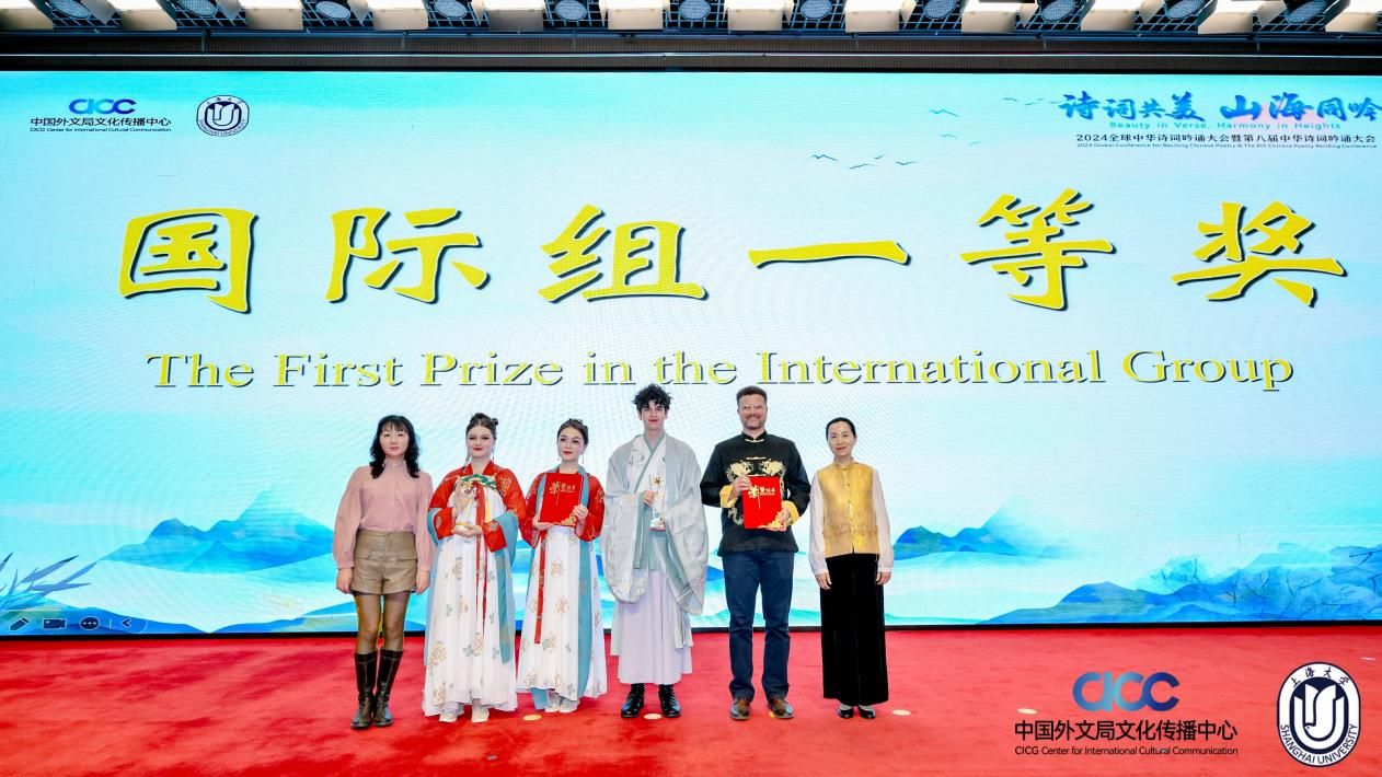 最终,美国哥伦比亚大学、纽约大学《钗头凤》获国际组特等奖。哈萨克斯坦国立欧亚大学《大唐江月情》、巴西巴伊亚联邦大学《青玉案·元夕》分获国际组一等奖。张金庭先生、段勇先生、赵靖茹女士,以及上海浦东发展银行总行普惠金融部副总经理臧渊先生向参赛国际学生所在高校颁发贺信。